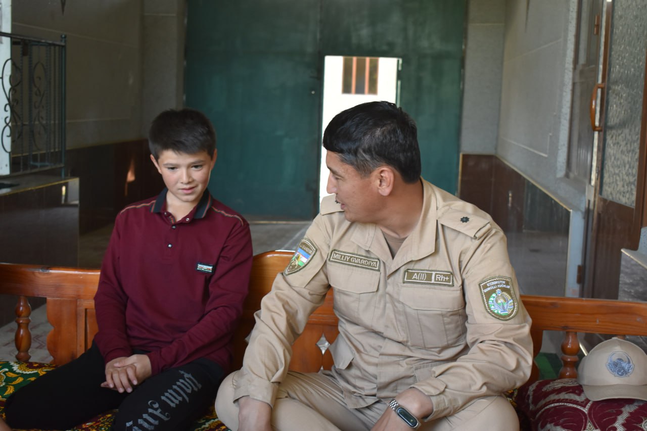 По случаю священного месяца Рамадан – символа щедрости и благодарности, нанесен визит в дома сотрудников Управления «Охраны» Сурхандарьинской области, погибших при исполнении служебных обязанностей во имя спокойствия нашей страны и покоя граждан.