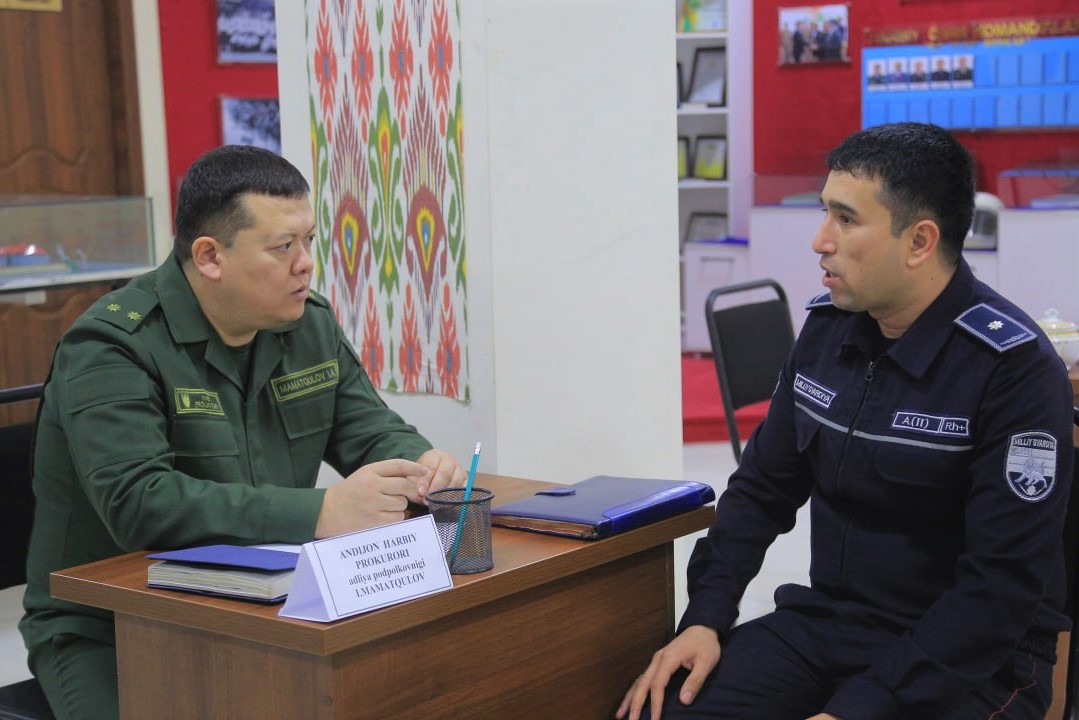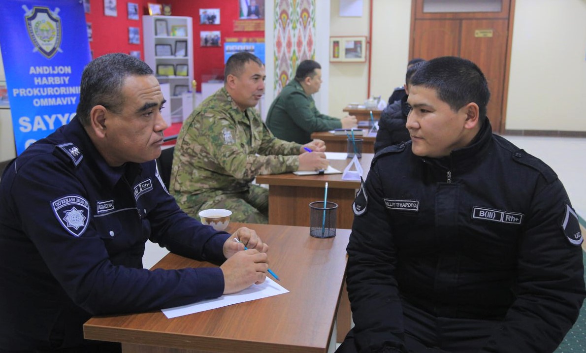 Управление «Охраны» Национальной гвардии Андижанской области совместно с Андижанской военной прокуратурой и Ферганским военным судом организовали в одной из воинских частей, расположенных на территории гарнизона, разъяснительно-профилактическое мероприятие.
