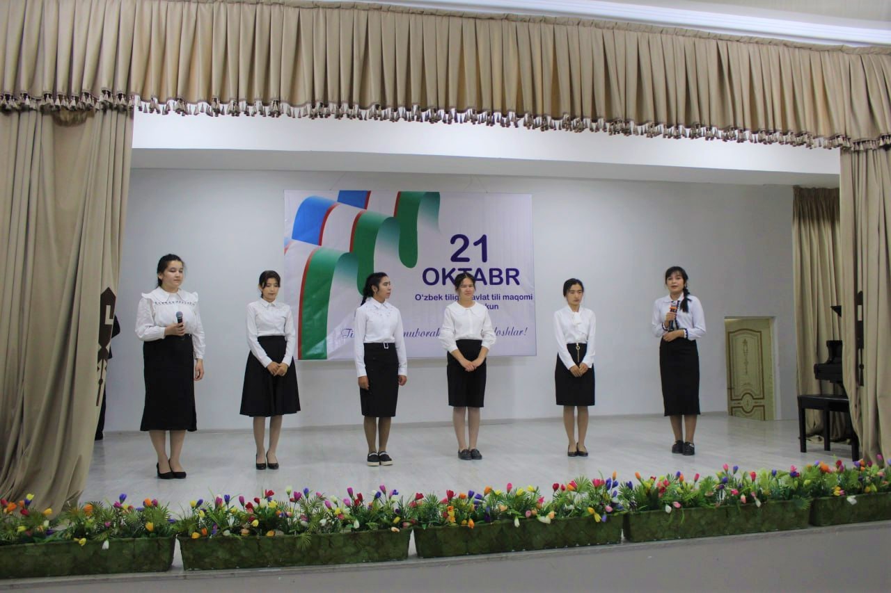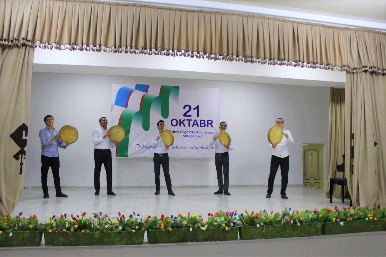 Наряду с этим во Дворце культуры состоялось праздничное мероприятие с участием представителей хокимията, Национальной гвардии, преподавателей и учащихся образовательных учреждений. На мероприятии участникам предоставлена информация об узбекском языке, а также презентованы сценические выступления. В завершение мероприятия зачитаны стихотворения писателей и поэтов.