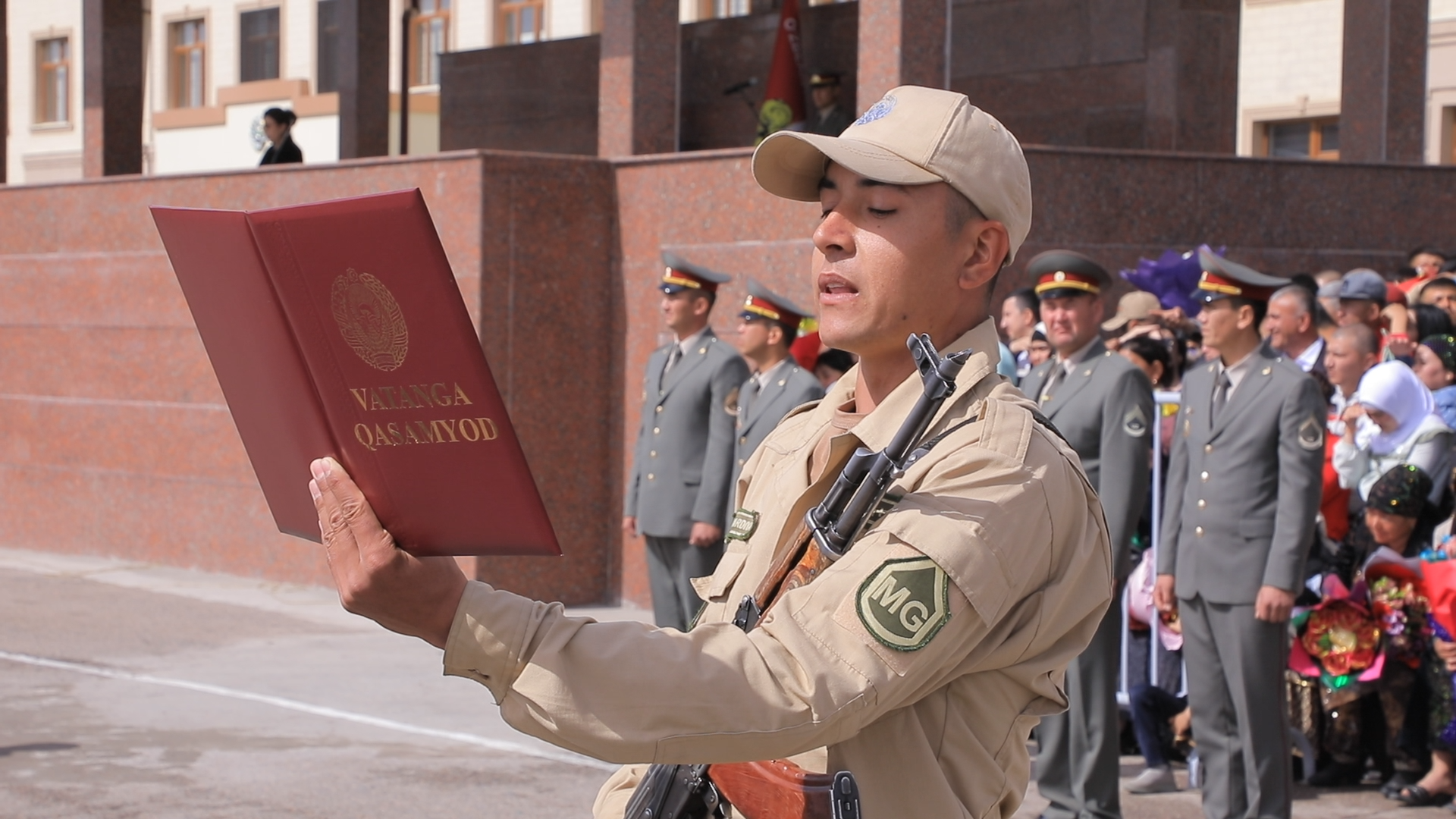 В мероприятии приняли участие родители, старейшины и представители общественности. Перед Государственным Флагом Республики Узбекистан солдаты поклялись с честью служить Родине и Президенту.