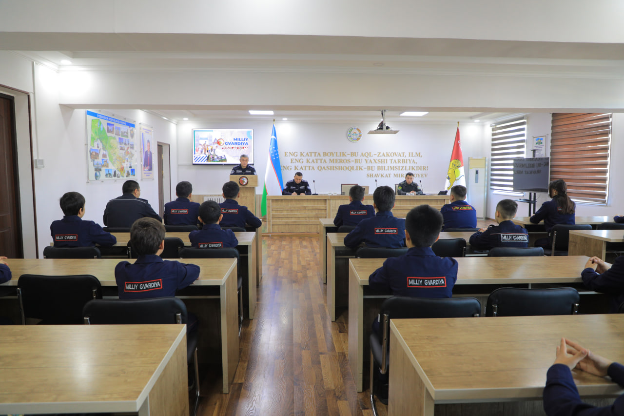 Миллий гвардия Тошкент минтақавий ўқув маркази шахсий таркибининг йўл ҳаракати қоидаларига қатъий риоя қилишларини таъминлаш, йўлларда ҳаракатланиш маданиятини янада ошириш мақсадида Миллий гвардия Марказий девони Автомобиль инспекцияси бошлиғи томонидан профилактик давра суҳбати ўтказилди.