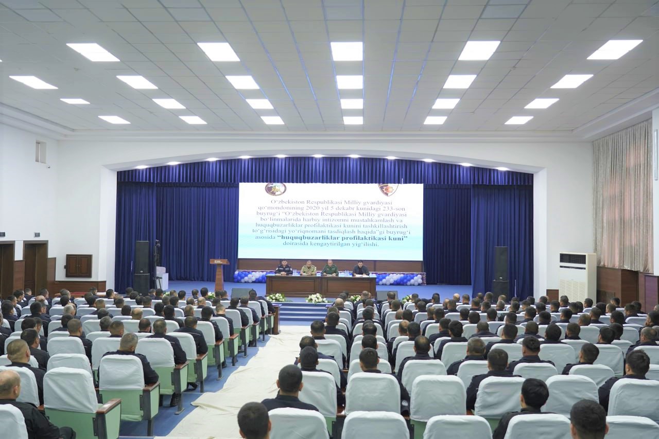 Шахсий таркиб ўртасида хизмат интизоми ва қонунчиликни мустаҳкамлаш, қонун бузилиши ҳолатларига нисбатан муросасиз муносабатда бўлиш муҳитини яратиш, турли хилдаги кўнгилсиз ҳолатлар содир этилишининг олдини олиш борасидаги ишлар ҳамда ҳуқуқбузарликлар профилактикаси куни доирасида Миллий гвардия Фарғона вилояти "Қўриқлаш" бошқармаси Қўқон минтақасида хизмат қилаётган шахсий таркиби иштирокида учрашув ташкил этилди.