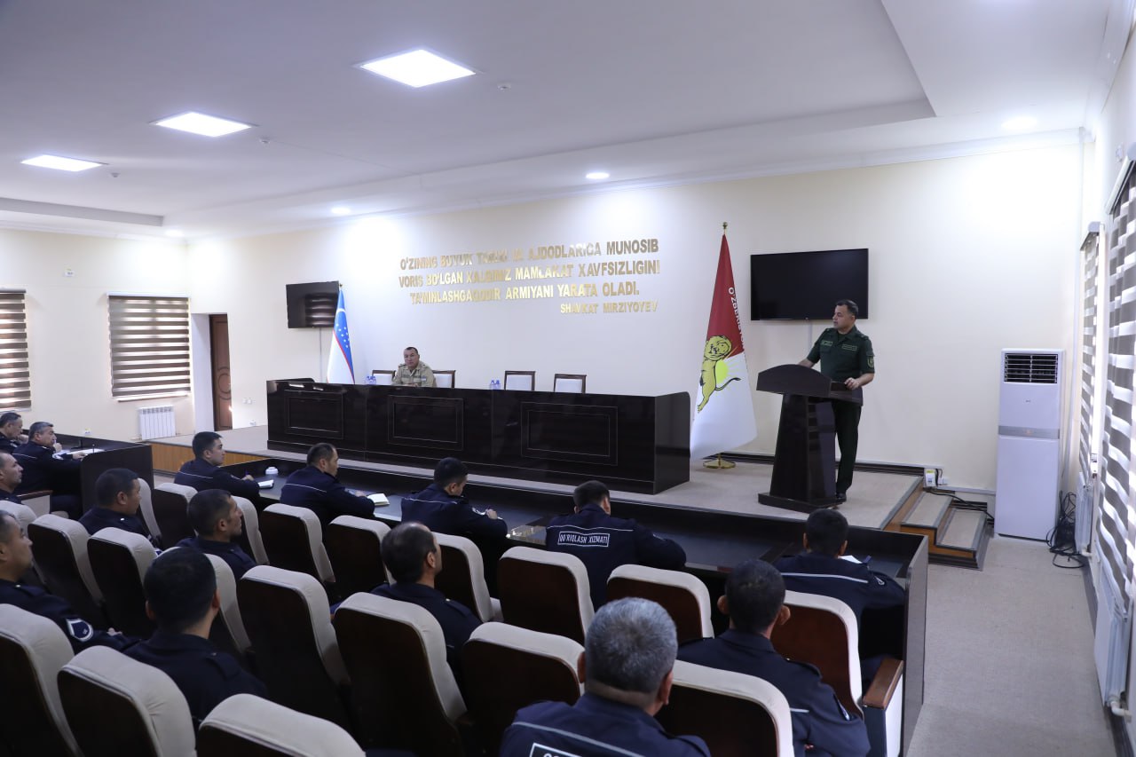 Куни кеча Қашқадарё вилояти "Қўриқлаш" бошқармаси раҳбарияти ҳамда Қарши ҳарбий прокуратураси ходими адлия подполковниги С.Х.Ашрапов ҳамкорлигида олди олинаётган жиноятлар, шунингдек, қонунийлик ва интизом ҳолатлари юзасидан йиғилиш бўлиб ўтди.