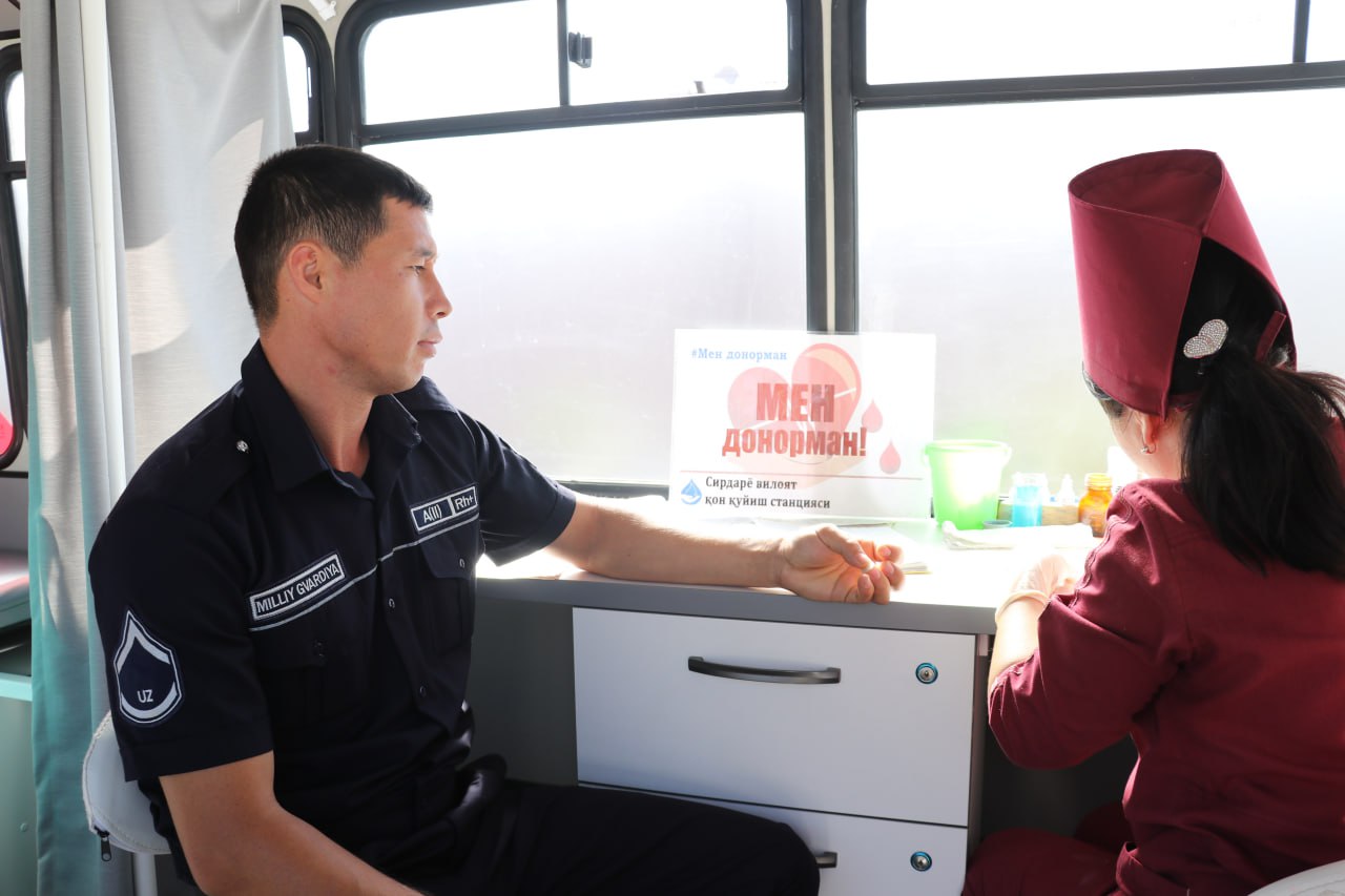 Куни кеча Сирдарё вилояти қон қуйиш станцияси вакиллари томонидан вилоятнинг Оқолтин тумани "Қўриқлаш" бўлими ходимлари иштирокида “Мен донорман” шиори остида беғараз қон топшириш акцияси ўтказилди.