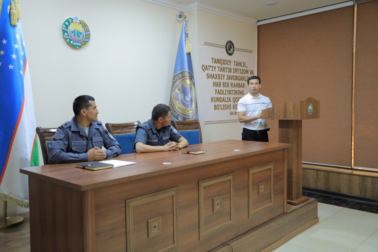 Миллий гвардия Наманган вилояти "Қўриқлаш" бошқармаси ходимлари ташаббуси билан муддатли ҳарбий хизматчиларига бошқармада мавжуд техник муҳандислик воситалари, ходимларнинг кундалик фаолиятида фойдаланиб фуқаролар хавфсизлиги ва хонадонларини қўриқлашда қўлланиладиган воситалар бўйича мутахассислар томонидан кўргазмали машғулот ўтказилди.