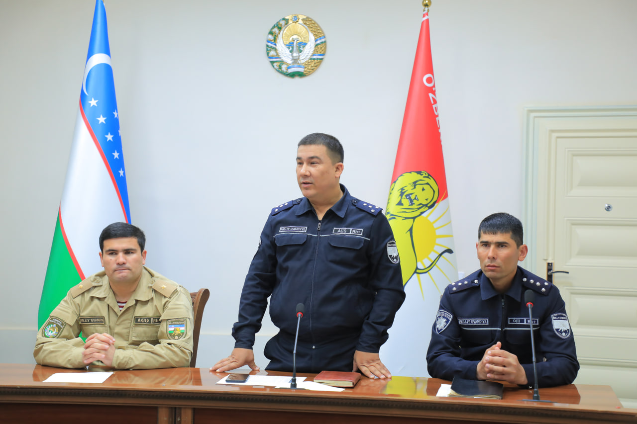 Куни кеча Олмалик ва Чирчиқ шаҳарларида Республика ҳарбий прокуратураси масъуллари томонидан Тошкент вилояти "Қўриқлаш" бошқармаси шахсий таркиби иштирокида ҳуқуқбузарлик ва жиноятчиликни олдини олишга мақсадида давра суҳбати ўтказилди.