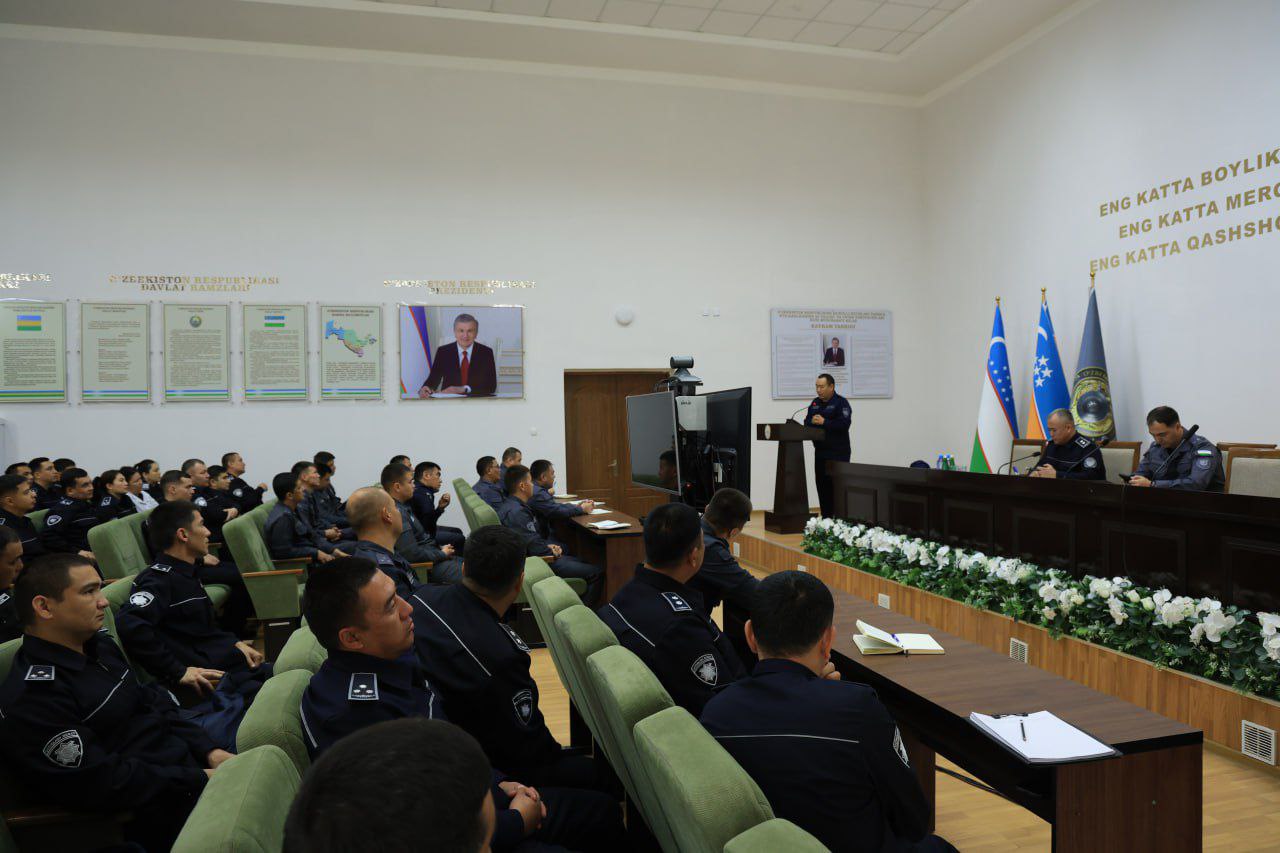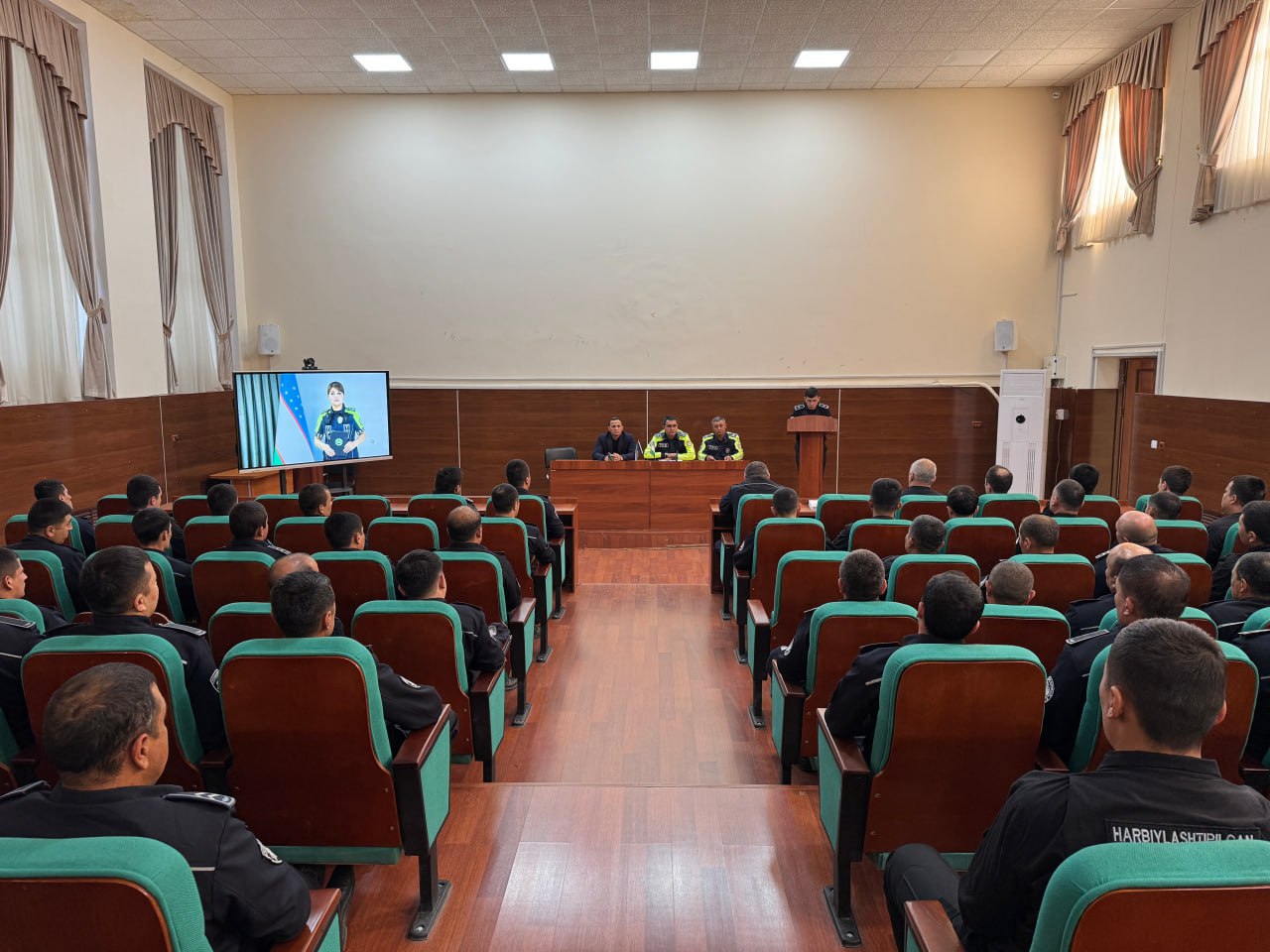 Шахсий таркиб иштирокида хизмат интизоми мустаҳкамлаш, коррупция ва содир этилиши мумкин бўлган йўл-транспорт ҳодисаларининг олдини олишга бағишланган учрашув бўлиб ўтди