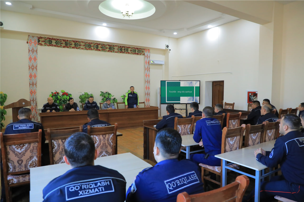 "Қўриқлаш" бош бошқармаси тизимларида хизмат қилиб келаётган ходимларнинг назарий ва амалий билимларини мустаҳкамлаш борасида бир қатор тадбирлар, ўқув машғулотлари ўтказиб келинмоқда. Жумладан, куни кеча Хоразм вилояти "Қўриқлаш" бошқармаси Янгиариқ ва Шовот туманлар "Қўриқлаш" бўлимлари ходимлари учун “Тинчлик – энг олий қадрият” мавзусида давра суҳбати ташкиллаштирилди.