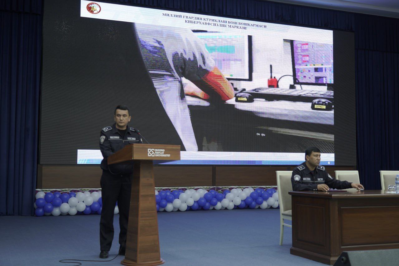 Бухоро вилояти "Қўриқлаш" бошқармаси шахсий таркиби иштирокида Миллий гвардия "Қўриқлаш" бош бошқармаси Киберхавфсизлик маркази масъул ходимлари томонидан ўқув семинар ташкил этилди. Ўқув семинарда бугунги кунда кибермаконда содир этилаётган жиноятларнинг турли кўринишлари, мамлакатимизда кузатилаётган турларидан хабардор бўлишлари, шунингдек кибержиноятларни аниқлаш ва уларни фош этиш бўйича тажрибали ходимлар мураббийлиги остида ўзларининг билим ва кўникмаларини эгаллаш имкониятига эга бўлишлари алоҳида таъкидланди.