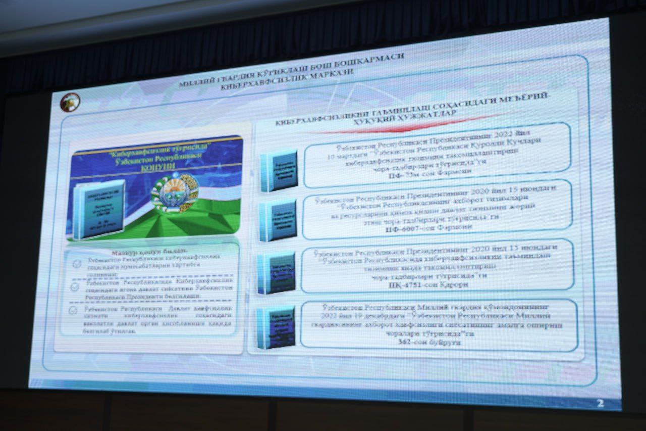 Бундан ташқари тадбир давомида «Киберхавфсизлик тўғрисида»ги Қонуннинг мазмун-моҳияти етказилиб, кибержиноят оқибатларидан ўз вақтида аҳолини хабардор қилиш, ҳамда уларнинг олдини олиш борасидаги ишлар муҳокама қилинган.