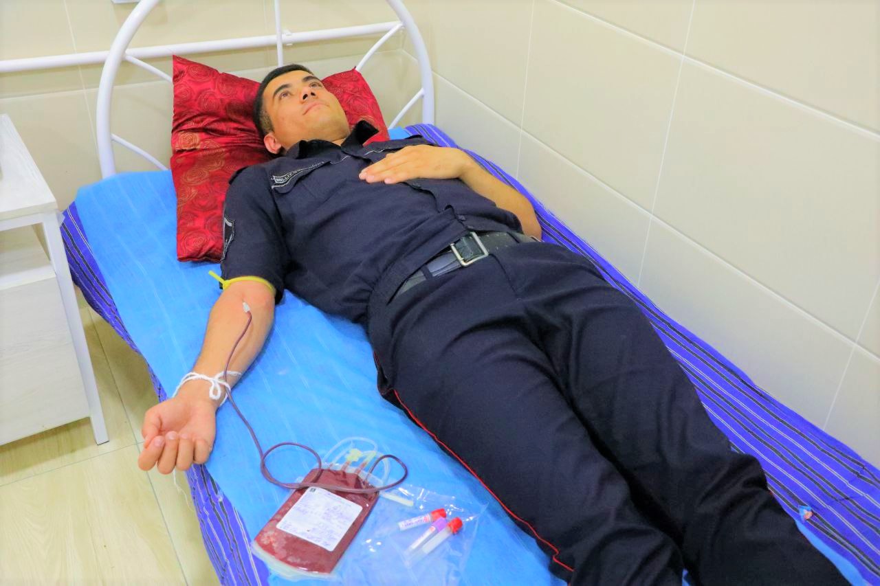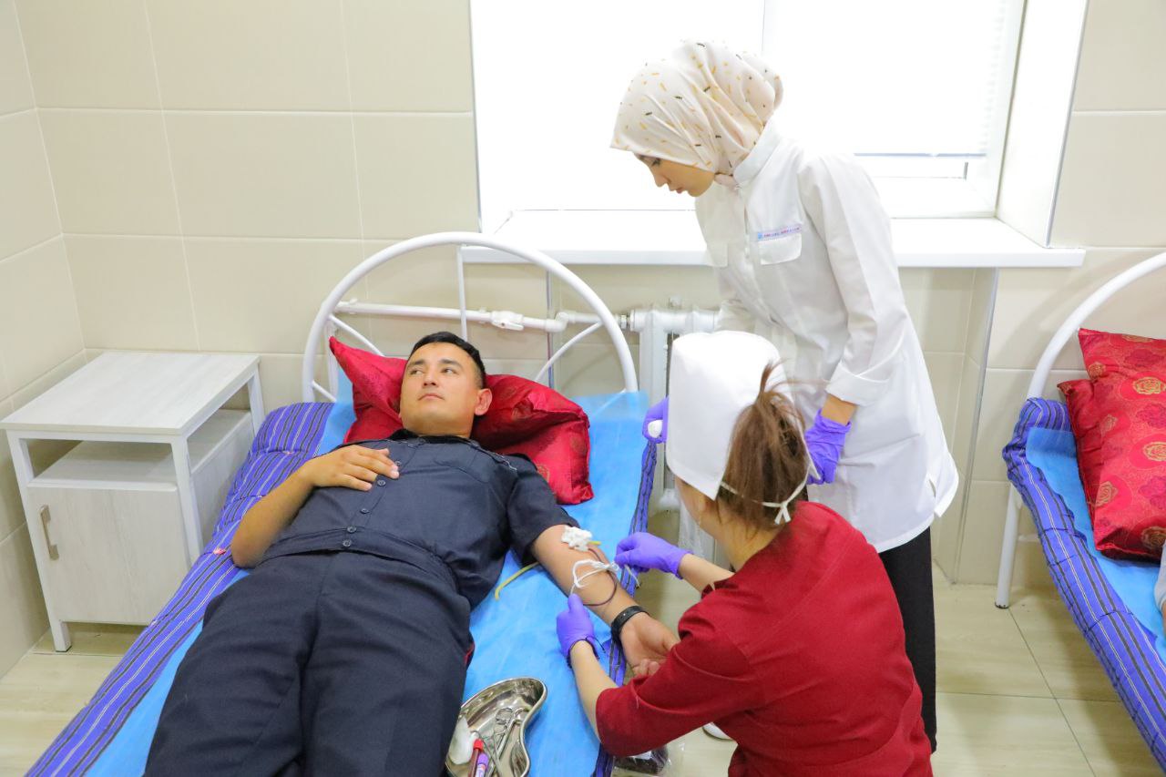 Республика кон куйиш марказида ташкил этилган мазкур тадбир давомида марказ шахсий таркиби ва тингловчилари кон топшириш тадбирида уз жонбозликлари билан иштирок этиб, бугунги кунда ўз дардига шифо кутиб, интизор ётган беморларнинг соғайишига ўз ҳиссаларини қўшдилар.