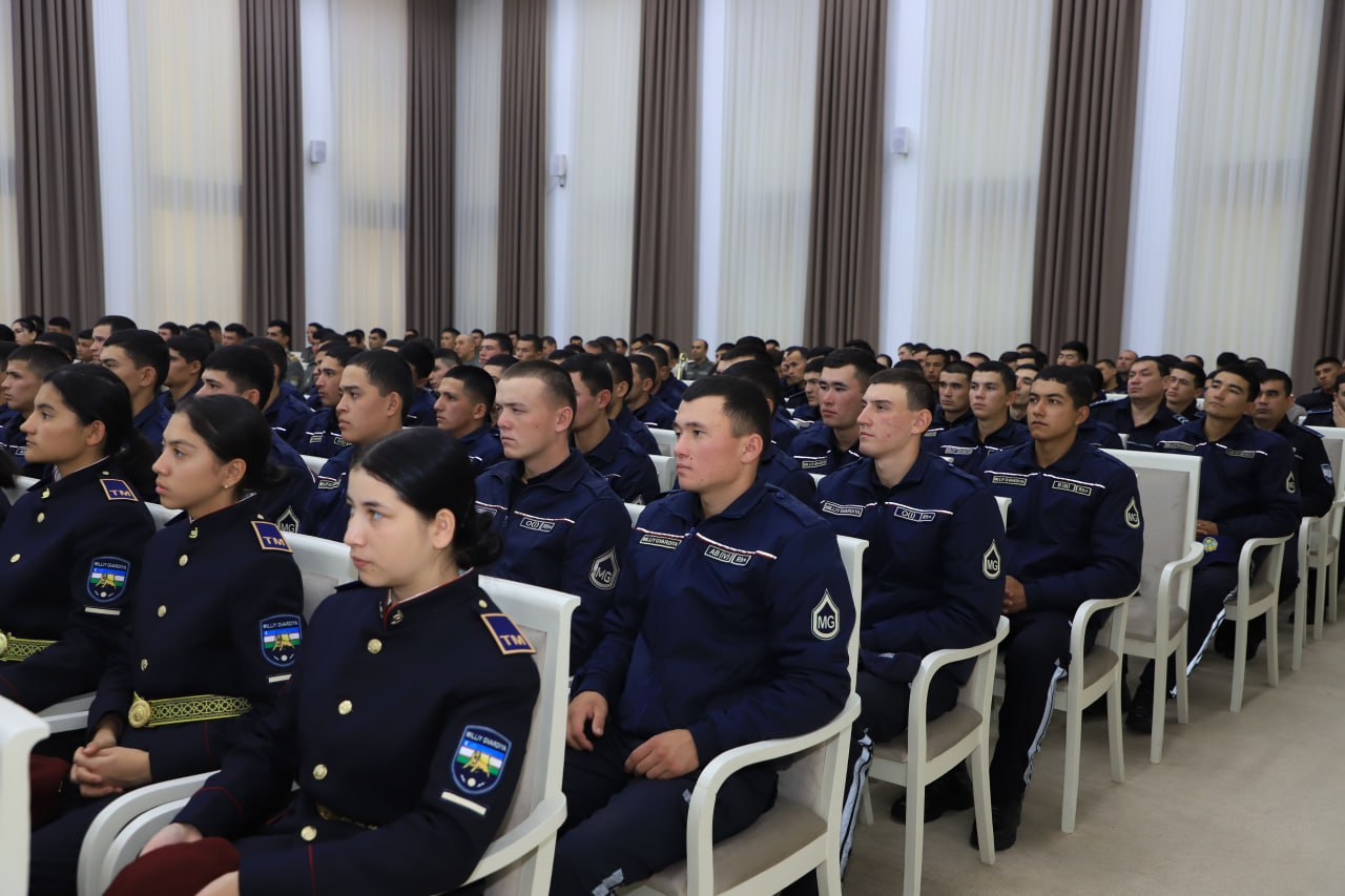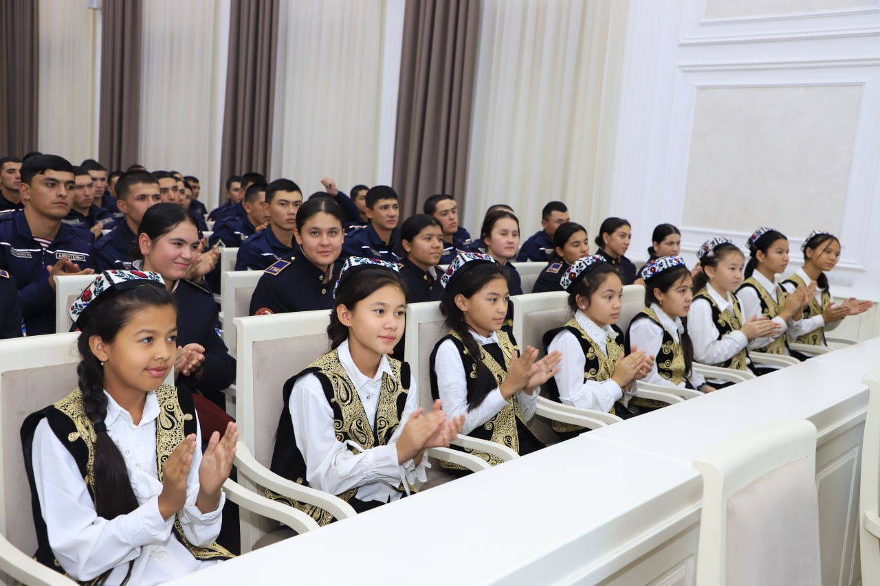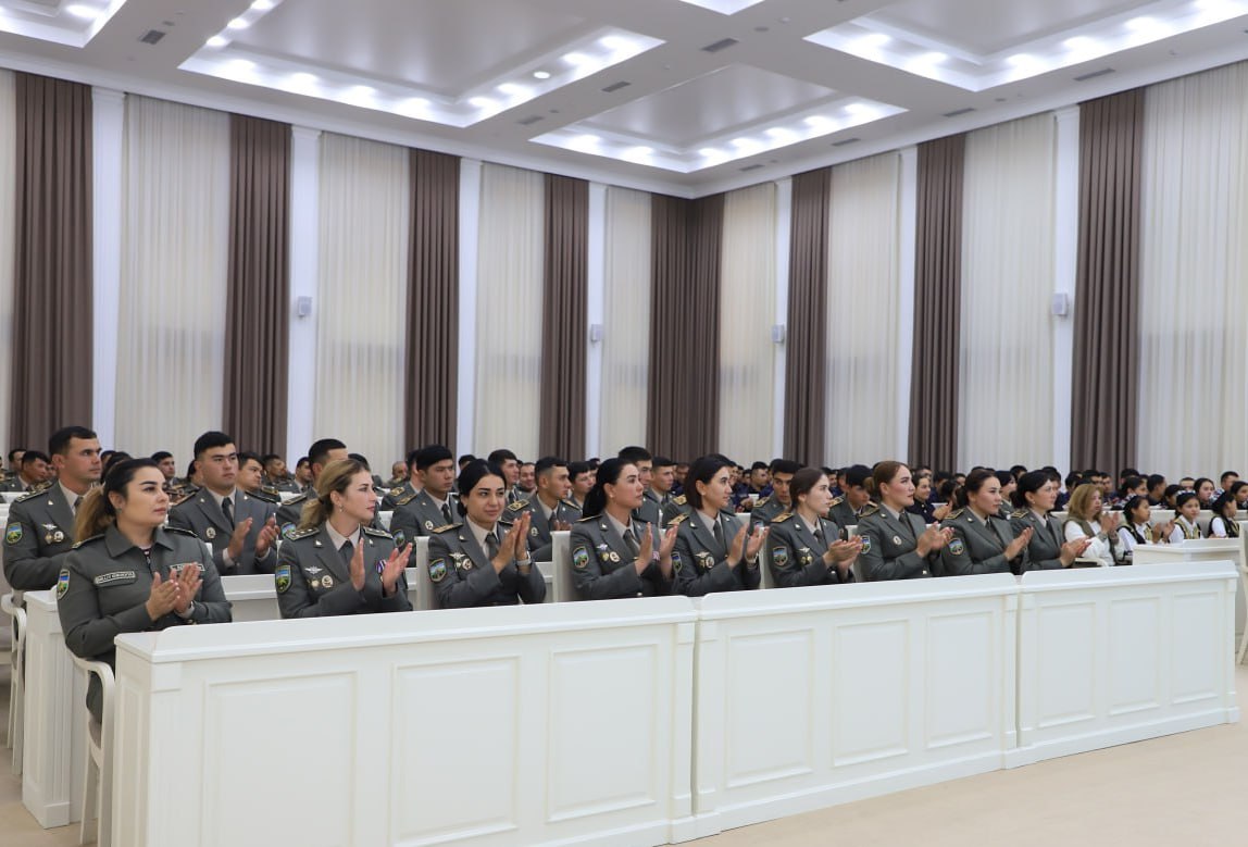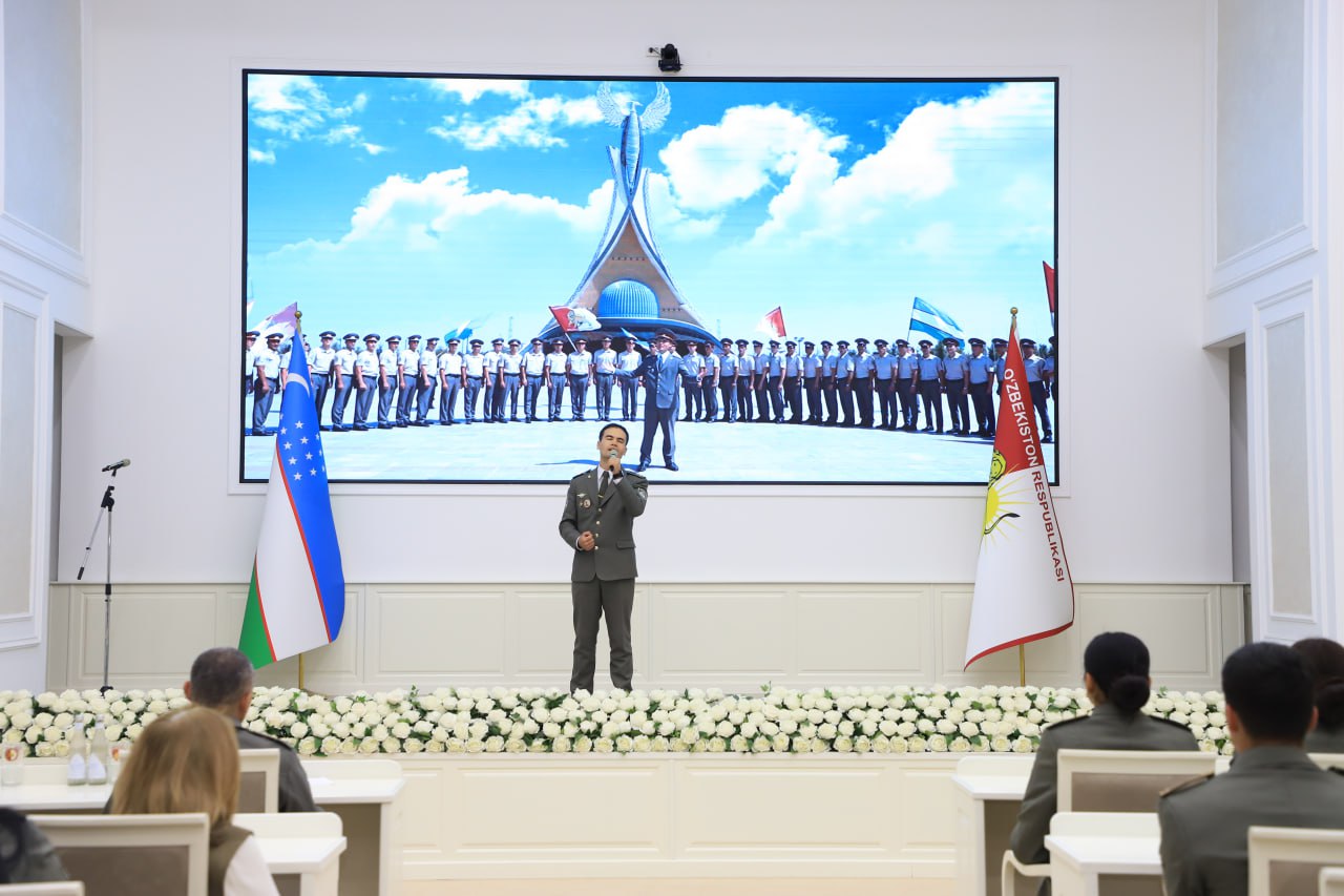 Шундан сўнг, тадбирнинг бадиий қисмида Ҳарбий-мусиқа академик лицейи ва “Темурбеклар мактаби” ўқувчилари ҳамда Жамоат хавфсизлиги университети курсантларининг бир-биридан мазмунли саҳна кўринишлари, ифодали шеър айтишлари, қўшиқлари барчани бирдек қувонтирди.