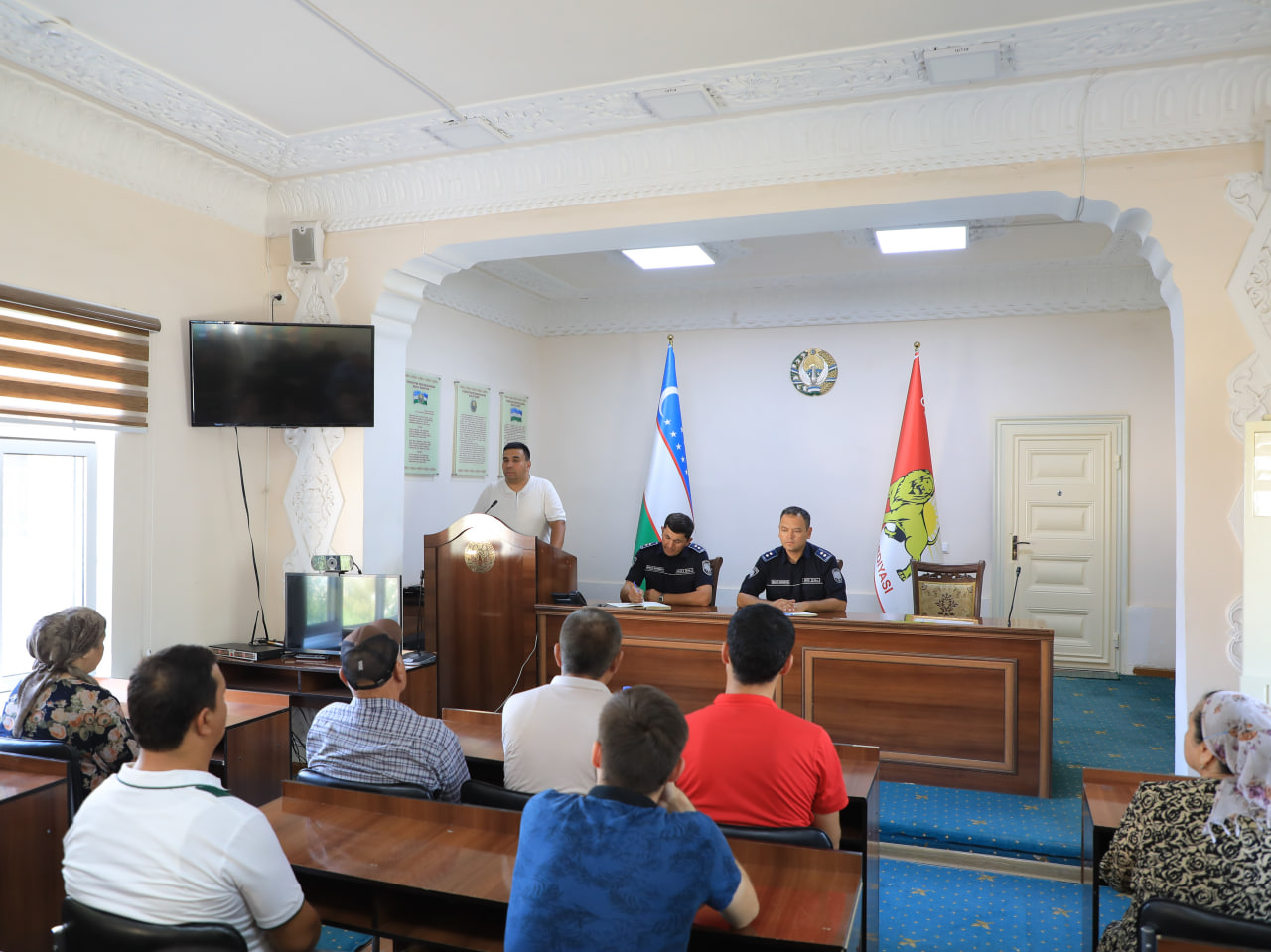 Хизматдан бўш вақтларида ходимлар орасида учраши мумкин бўлган қонун бузилиш ҳолатларини олдини олиш, тамагирлик, фирибгарлик каби ҳуқуқбузарликларга йўл қўймаслик ҳамда сафдошларига ўрнак бўлган ҳолда хизмат олиб боришга жиддий эътибор қаратиш лозимлиги тушунтирилди.