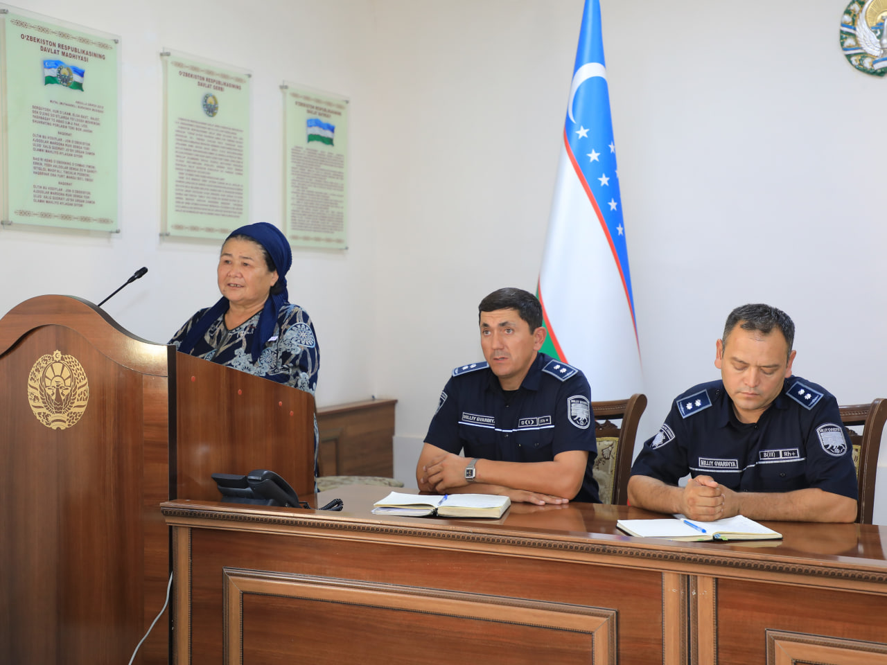 Тадбир давомида ходимларнинг хизмат ўташ тартиби, йўл қўйилаётган камчиликлар ва ютуқлари сарҳисоб қилиниб, келгусидаги режалар белгилаб олинди.