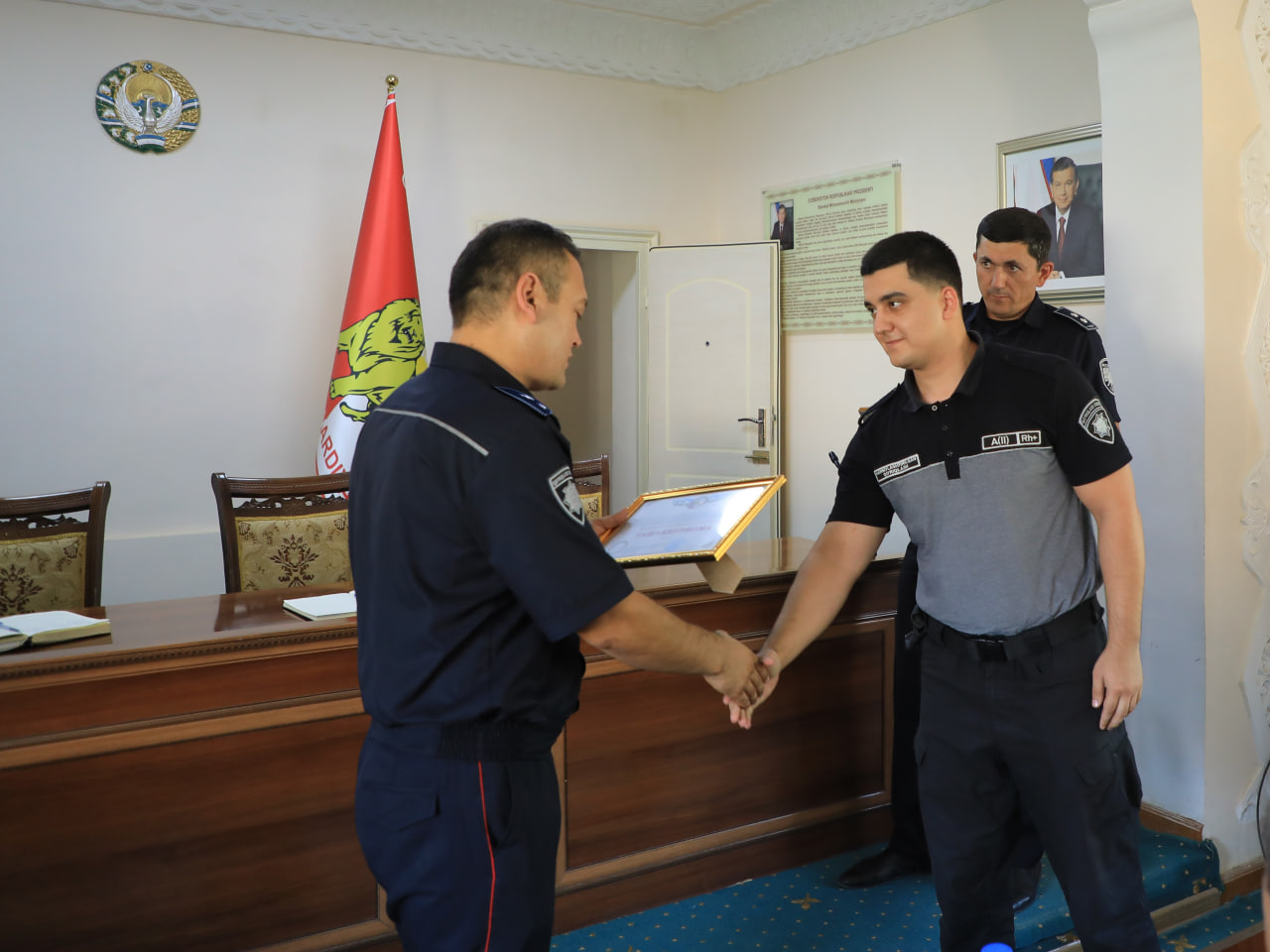 Тадбир якунида намунали хизмат олиб бориб, шахсий таркибга ўрнак бўлган ходимлар ва уларнинг ота-оналари алоҳида эътироф этилди.