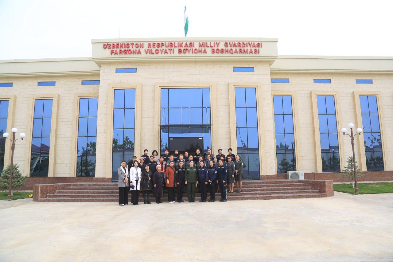 Ўзбекистон Республикаси Ҳарбий прокуратураси ҳамда Миллий гвардия Фарғона вилояти бўйича бошқармаси ҳамкорлигида ҳарбий хизматчиларни ижтимоий-ҳуқуқий жиҳатдан қўллаб-қувватлаш, ижтимоий ҳимоя қилиш борасидаги янгиликларни етказиш ҳамда мавжуд муаммоларини ҳал қилиш мақсадида Миллий гвардия бошқармаси биносида очиқ мулоқот тарзидаги учрашув ташкил этилди. Мазкур тадбирга вилоятдаги куч тузилмаларда хизмат қилиб келаётган аёл ҳарбий хизматчи ва ходималар жалб қилинди.