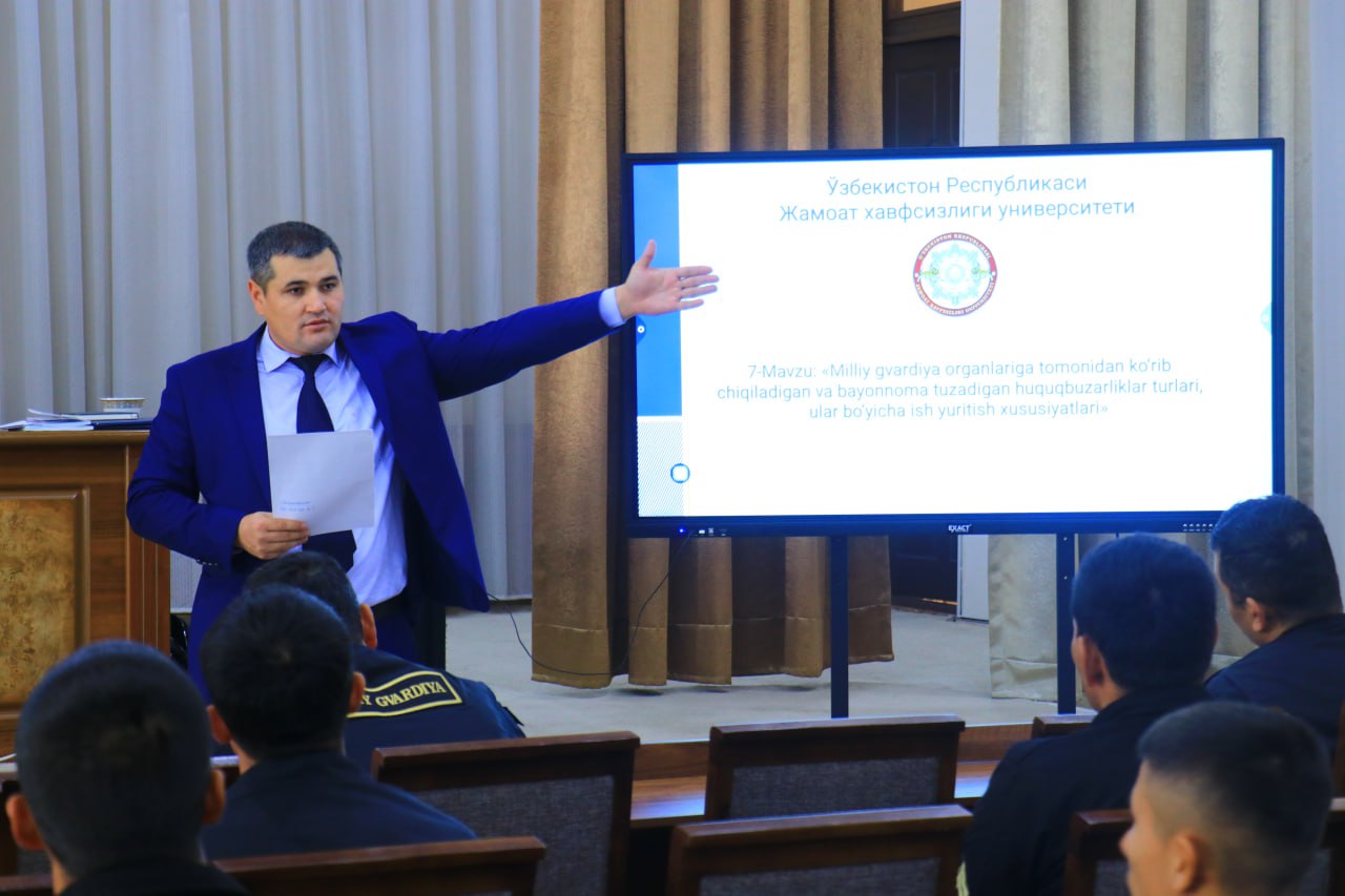 Куни кеча Ўзбекистон Республикаси Жамоат хавфсизлиги университетининг профессор ўқитувчилари томонидан Миллий гвардия Андижон вилояти бўйича бошқармасида ҳарбий хизматчи ҳамда ходимлар томонидан маъмурий баённомалар расмийлаштирилаётганда процессуал тартибда иш кўрилиши, бу бўйича келиб чиқаётган муаммоли вазиятлар, шунингдек жиноятчиликка қарши курашиш ва ҳуқуқбузарликлар профилактикасини ташкил этиш борасидаги билимларни оширишга қаратилган ўқув машғулоти бўлиб ўтди.