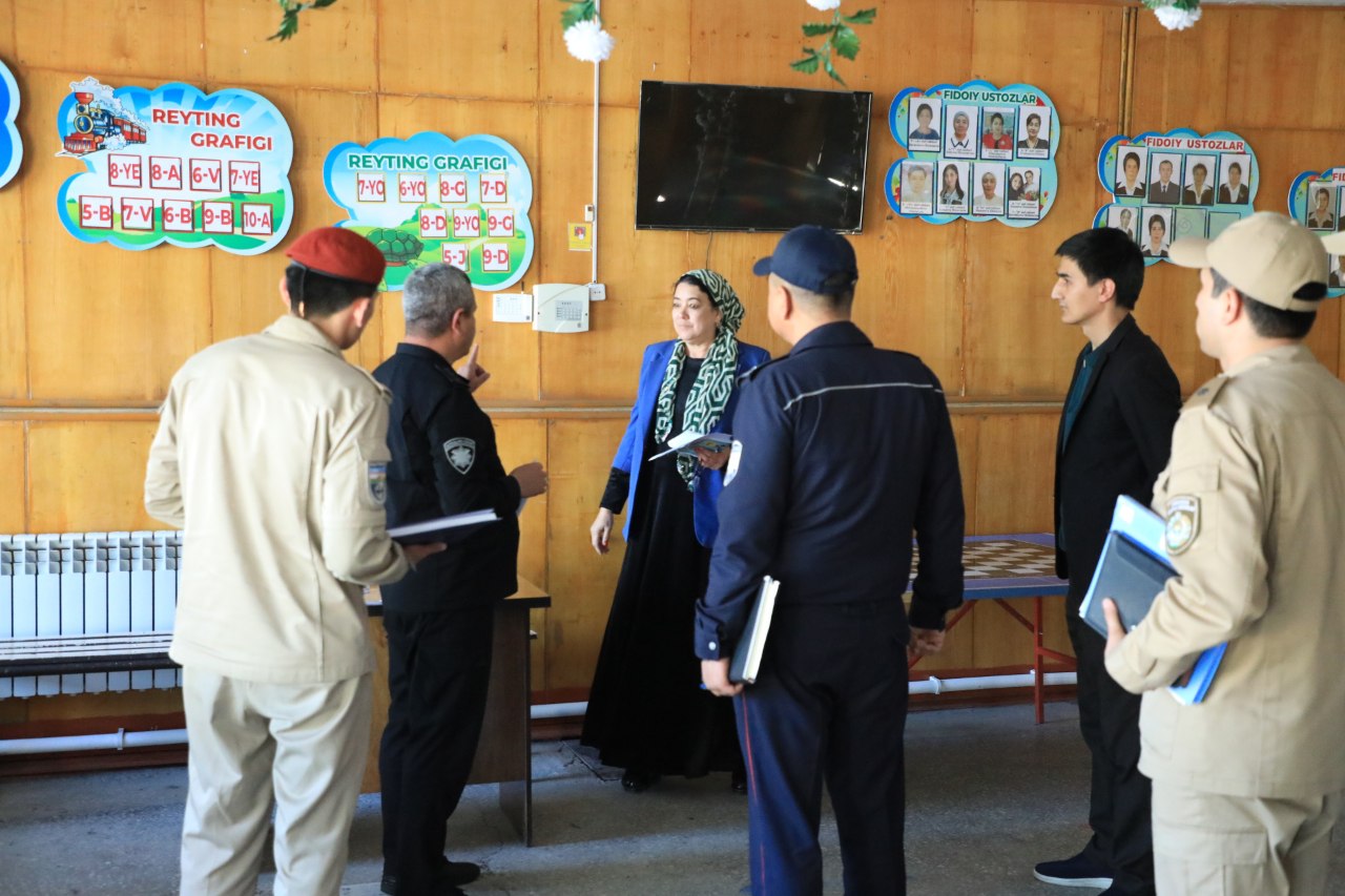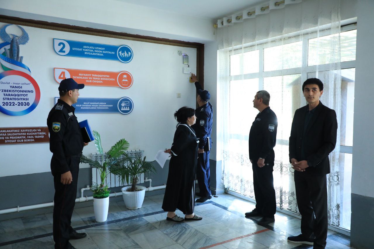 Шунингдек, "Хавфсиз мактаб" лойиҳасига асосан, мактабларнинг хавфсизлигини таъминлашда янги тизим асосида жорий қилинган қоровуллик хизматини ташкил этиш, ўқув муассасаларига ўрнатилган "ташвиш" тугмалари ва видеокузатув тизимларини такомиллаштириш, биометрик идентификация тизимларини жорий қилиш ҳамда тезкор ҳаракатланувчи гуруҳларнинг хизмат фаолиятини кучайтириш бўйича мутасадди раҳбарларга тегишли кўрсатмалар берилди.