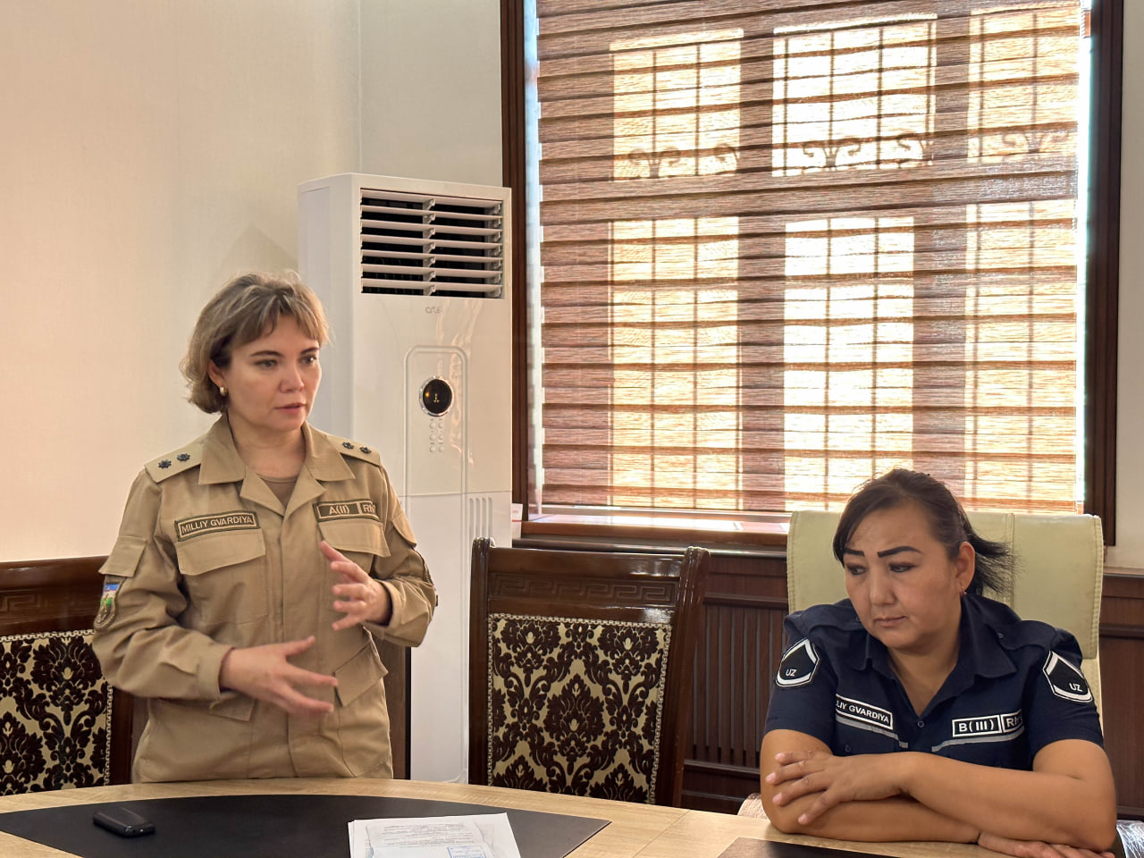 Самарқанд вилоятида Ўзбекистон Республикаси Миллий гвардияси хотин-қизлар жамоатчилик кенгаши аъзолари томонидан вилоятдаги аёл ҳарбий хизматчи ва ходималар учун “Тинчлик ва хавфсизликни таъминлашда хотин-қизларнинг ўрни” мавзусида давра суҳбати ташкил этилди.
