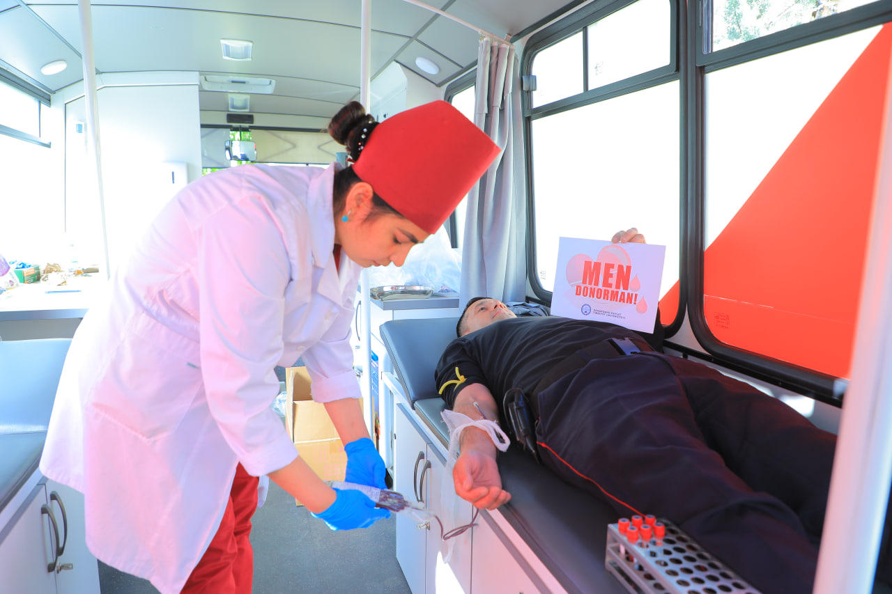 Шундан сўнг, "Қўриқлаш" бўлимида хизмат вазифасини ўтаётган кўнгилли ходимлар ўз ихтиёри билан “Мен донорман” акциясида фаол иштирок этиб беғараз қон топширишди.