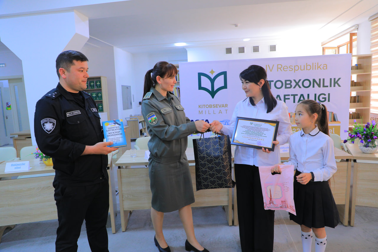 А.С.Пушкин номидаги Самарқанд вилоят ахборот-кутубхона марказида Миллий гвардия Самарқанд вилояти бўйича бошқармаси ва вилоят "Қўриқлаш" бошқармаси билан ҳамкорликда "Китобсевар миллат" шиори остида “Китобхон она – китобхон бола" кўрик-танлови бўлиб ўтди. Тадбирда Алишер Навоий номидаги Ўзбекистон Миллий кутубхонаси директори Умида Тешабаева иштирок этди.