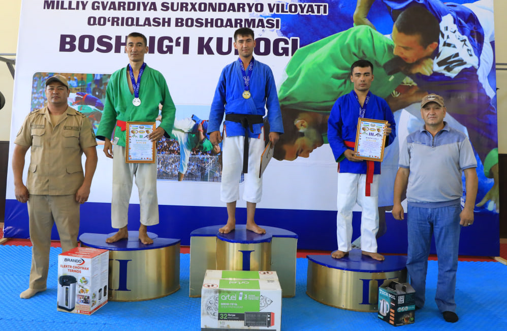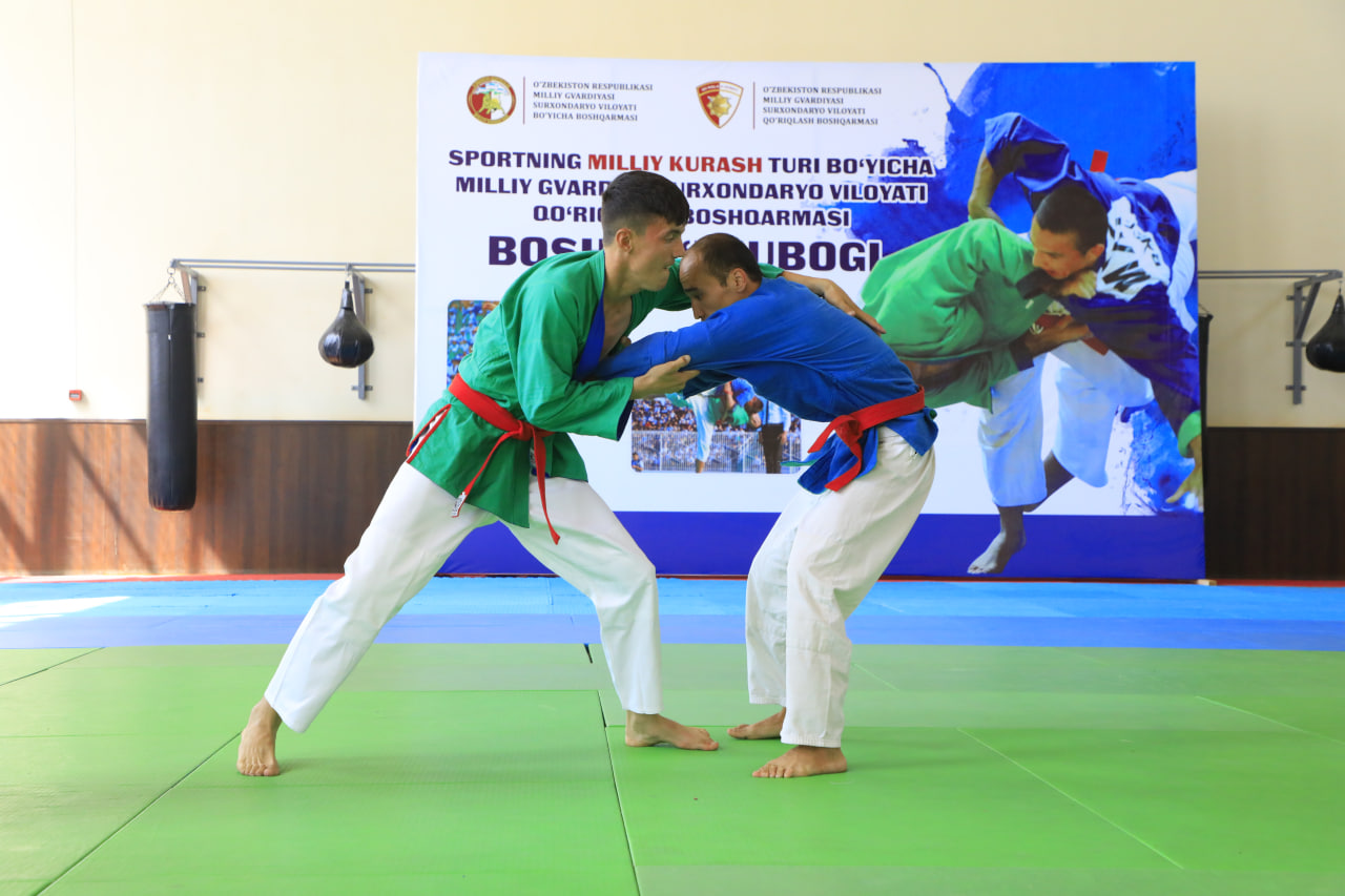 Спорт билан шуғулланиш, жамоада соғлом турмуш тарзини қарор топтиришда, бирдамликни оширишга хизмат қилади. Айниқса мунтазам спорт билан шуғулланиб, жисмоний ва жанговар шайликни ошириб бораётган "Қўриқлаш" хизмати ходимлари ўртасида ташкил этиладиган мусобақалар муросасиз кўриниш касб этади. Ўзбекистон Республикаси Давлат Мустақиллигининг ўттиз икки йиллиги муносабати билан шахсий таркиб ўртасида соғлом турмуш тарзини тарғиб қилиш мақсадида "Янги ҳаёт учун, Янги Ўзбекистон учун!" шиори остида спортнинг кураш тури бўйича Миллий гвардия Сурхондарё вилояти "Қўриқлаш" бошқармаси бошлиғи кубоги мусобақаси ташкил этилди. Унда 100 га яқин Миллий гвардия ҳарбий хизматчилари, шаҳар ва туман "Қўриқлаш" бўлимлари полвонлари ўз имкониятларини синовдан ўтказдилар. Ҳар бир баҳслар тажрибали ҳакамлар томонидан одилона бошқариб борилди. Мусобақада ғолибликни қўлга киритиш учун гиламга тушган полвонлар муросасиз кураш олиб боришди.