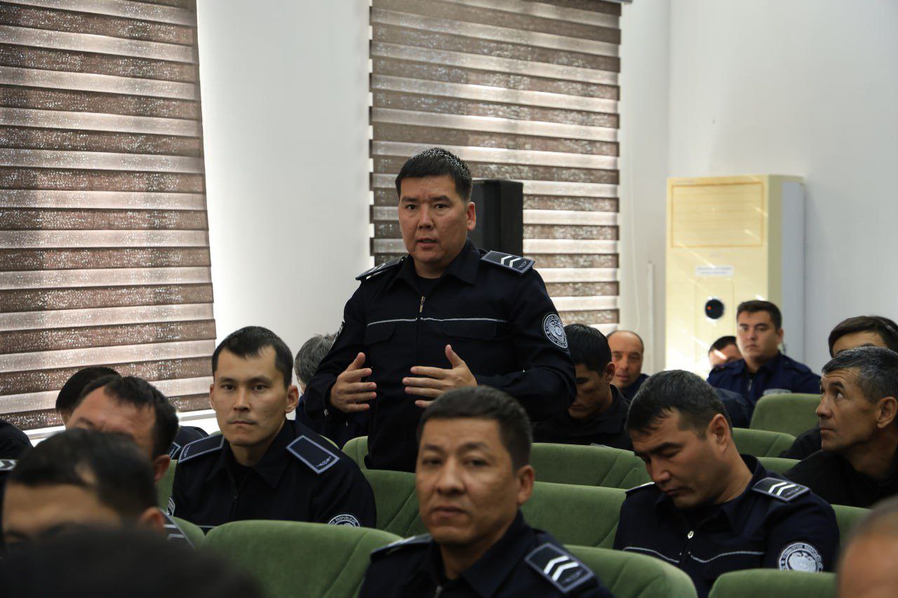 Бундан ташқари, шахсий таркиб ўртасида хизмат интизомини мустаҳкамлаш масалаларига алоҳида эътибор қаратилди. Иштирокчилар жамоада қонунбузарликларга йўл қўймаслик ва салбий ҳолатларга чек қўйиш бўйича комплекс чора-тадбирларни муҳокама қилиб, ходимларда юксак маънавий-ахлоқий фазилатларни ва хизмат бурчини бажаришга онгли муносабатни шакллантириш муҳимлигини таъкидладилар. Ҳар бир ходимнинг топширилган иш учун шахсий масъулиятини ошириш, назорат тизимини такомиллаштириш ва самарали хизмат қилиш учун зарур шарт-шароитлар яратиш механизмлари кўриб чиқилди, шунингдек, жамоада юқори профессионаллик ва интизомни сақлаш бўйича қўшимча чора-тадбирлар белгиланди.