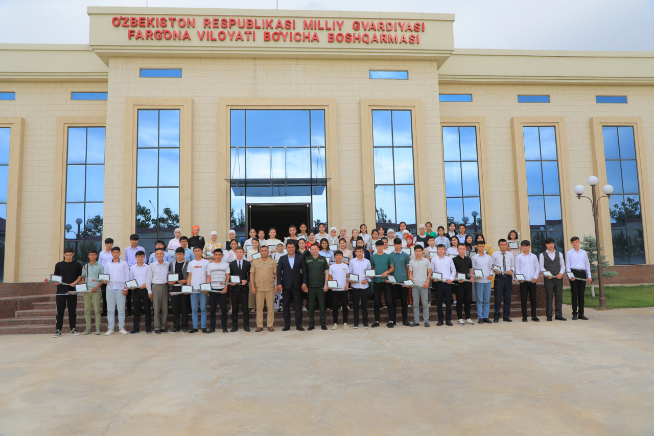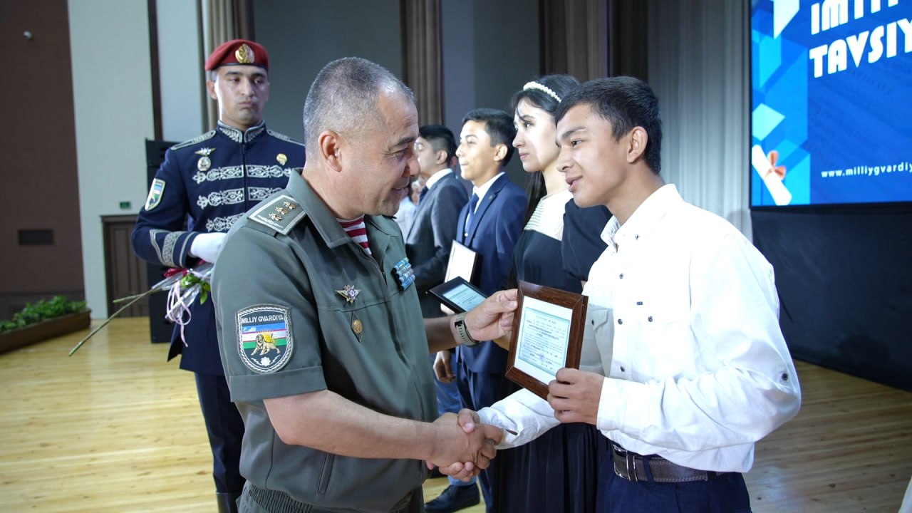 Жумладан куни кеча Миллий гвардия тизимларида намунали хизмат қилиб, мамлакатимиз тинчлиги ҳамда сарҳадларимиз дахлсизлигини таъминлаётган, шунингдек хизмат вақтида ҳалок бўлган ҳарбий хизматчи ва ходимларнинг фарзандларига олий таълим муассасаларига ўқишга кириш учун имтиёзли тавсияномалар тантанали тарзда топширилди.