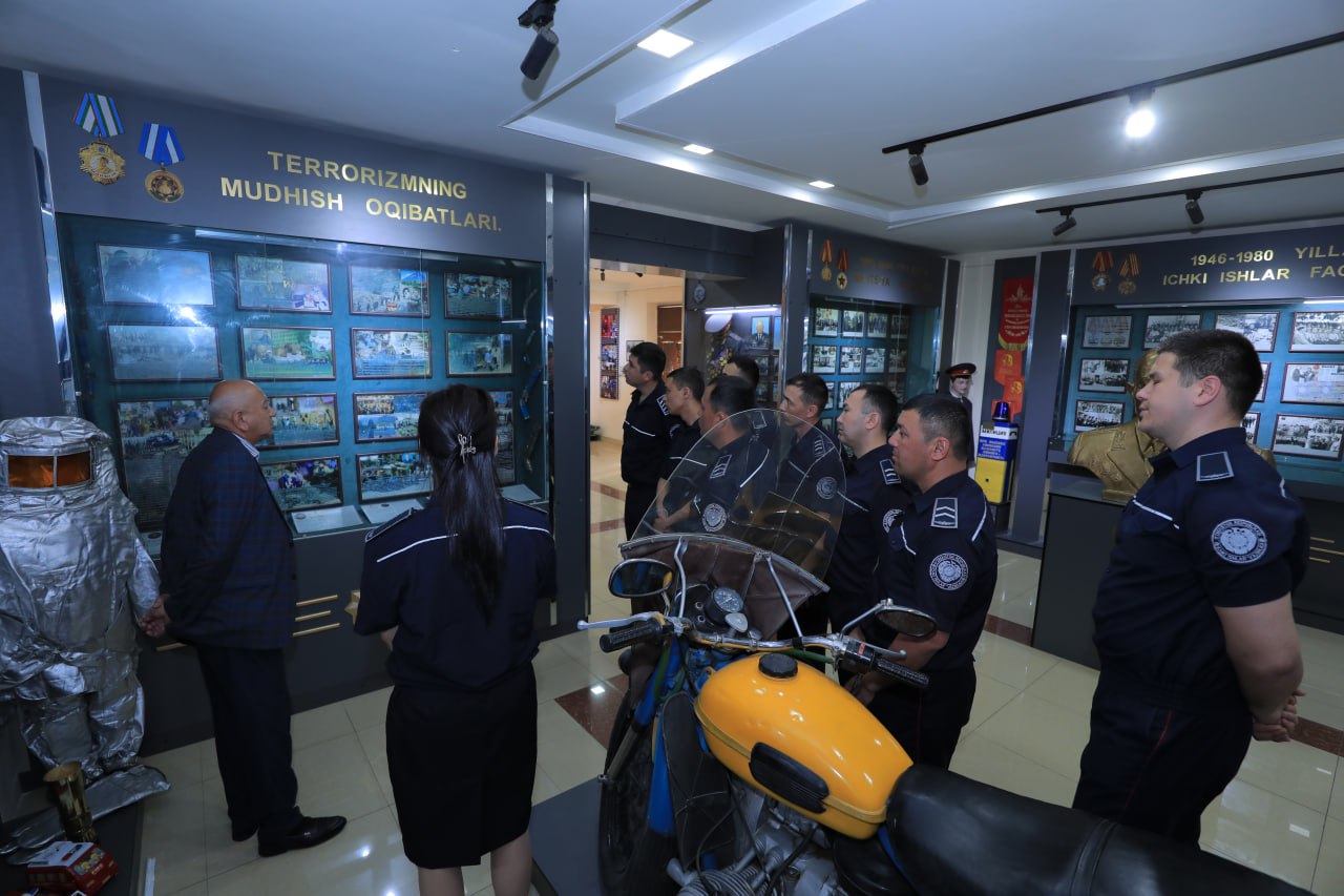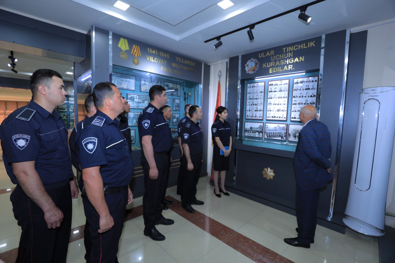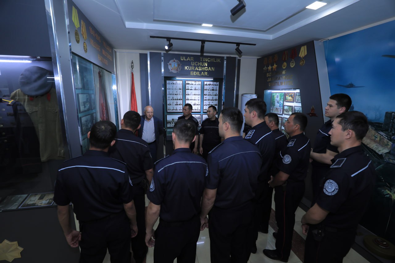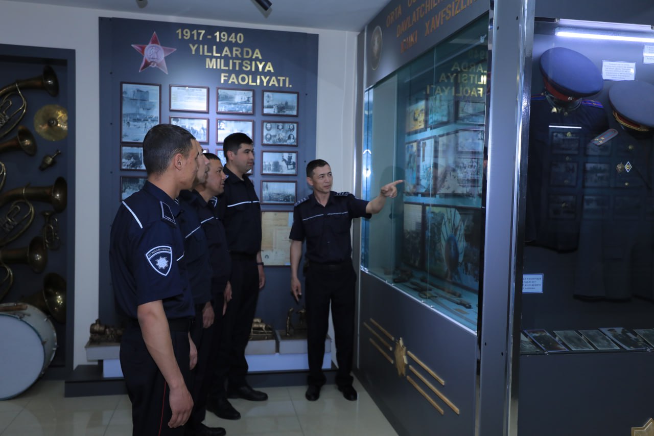 Бундан ташқари, Андижон вилояти Қўриқлаш бошқармаси ташаббуси билан бошқарма ходимлари учун вилоят Ички ишлар бошқармаси музейига саёҳат ташкил этилди. Ушбу саёҳат давомида иштирокчилар милиция тизимининг тарихий ривожланиши, унинг илк шаклланиш босқичлари ва бугунги кундаги замонавий кўриниши билан яқиндан танишдилар. Музейда Андижон милициясининг ташкил топиши, фаолиятида алоҳида ўрин тутган генераллар ва таниқли ходимлар ҳаёти, уларнинг Ватан ва халқ манфаати йўлидаги жасоратлари ҳақида қизиқарли маълумотлар тақдим этилди.