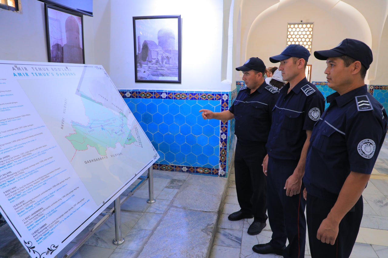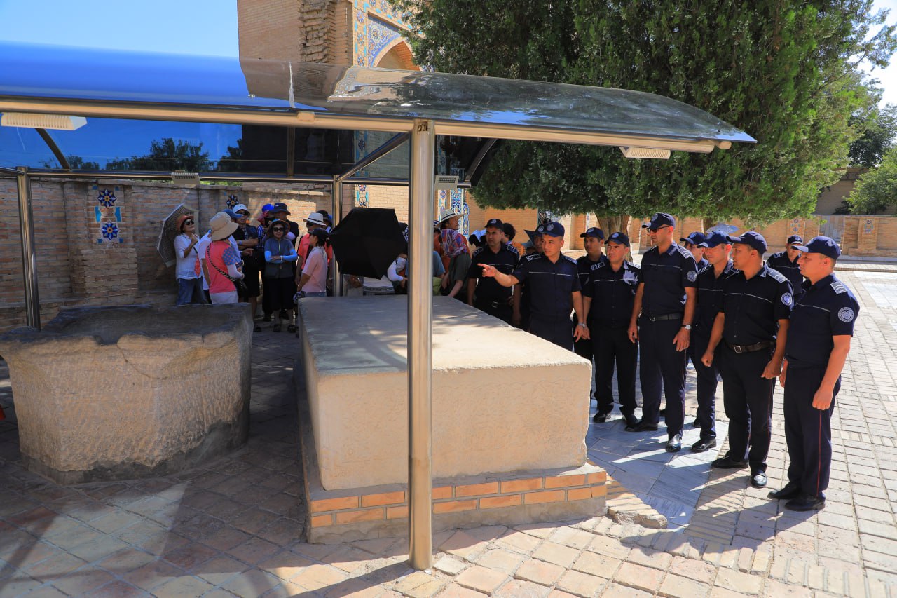 Жумладан, куни кеча Самарқанд шаҳар Қўриқлаш бўлими масъуллари ва ходимлари иштирокида шаҳрининг диққатга сазовор жойларига саёҳат уюштирилди. Саёҳатчилар кўҳна кентнинг тарихий обидаларидан бири Гўри Амир мақбарасида бўлди. Улар бу ерни томоша қилар экан, мажмуанинг тарихи ва унга тегишли бўлган маълумотларга эга бўлишди.