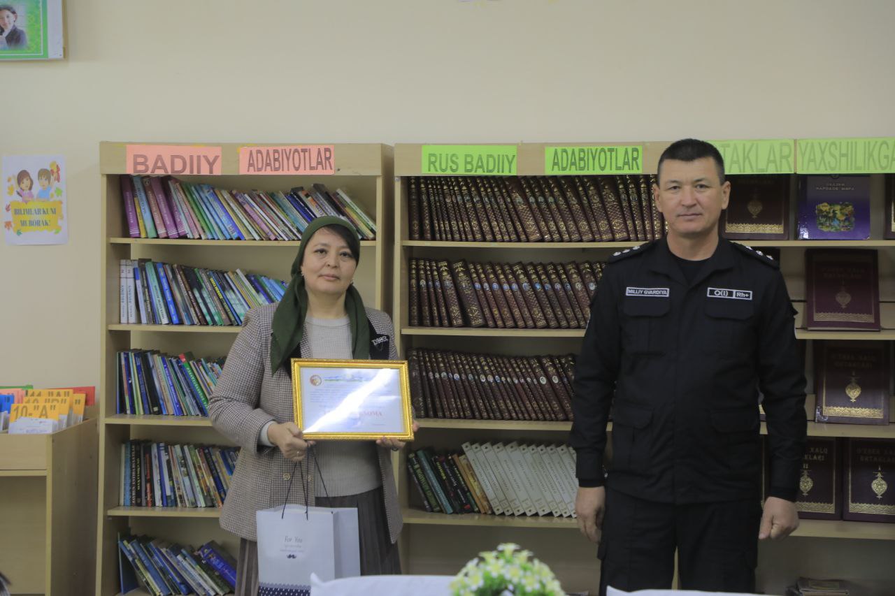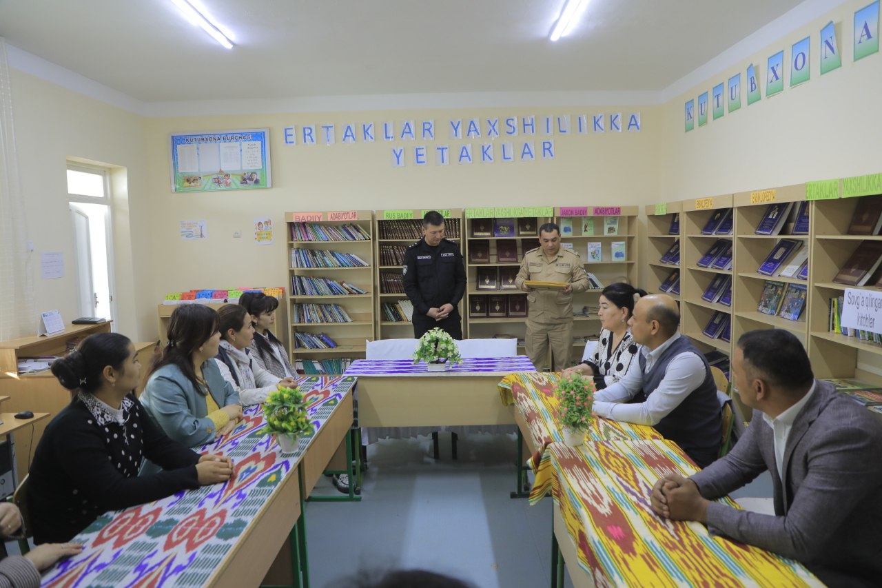 Хусусан, ўқувчиларнинг дарсларга қатнашиш кўрсаткичи яхши бўлган, ота-оналар ва маҳалла билан ҳамкорликни мустаҳкамлаган Термиз шаҳридаги 23-сонли умумтаълим мактабининг фаол ўқитувчиларнинг хизматлари алоҳида эътирофлидир. Миллий гвардия Сурхондарё вилояти "Қўриқлаш" бошқармаси бошлиғи ушбу таълим масканига ташриф буюриб, барча ўқитувчиларга ўз миннатдорчилигини билдирди. Мактаб директори Гулинор Холбоева ҳамда ўқитувчи Дилдора Нурмуҳаммедовага ташаккурнома ҳамда эсдалик совғалари топширилди. Мактаблардаги давомат ҳамда ўқувчиларнинг муаммоли масалаларини бартараф этишда фаол бўлаётган мактаблар таҳлил қилиниб, белгиланган тартибга рағбатлантирилиб борилиши таъкидланди.