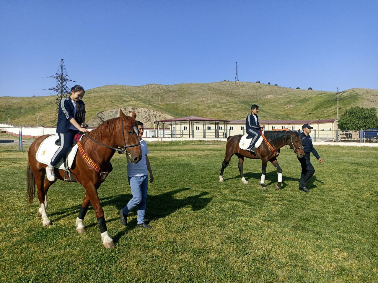 Шундан сўнг ўқувчилар спортчи отларни миниб кўрдилар ва камон отиш орқали мерганлик қобилиятларини яна бир бор синовдан ўтказдилар.