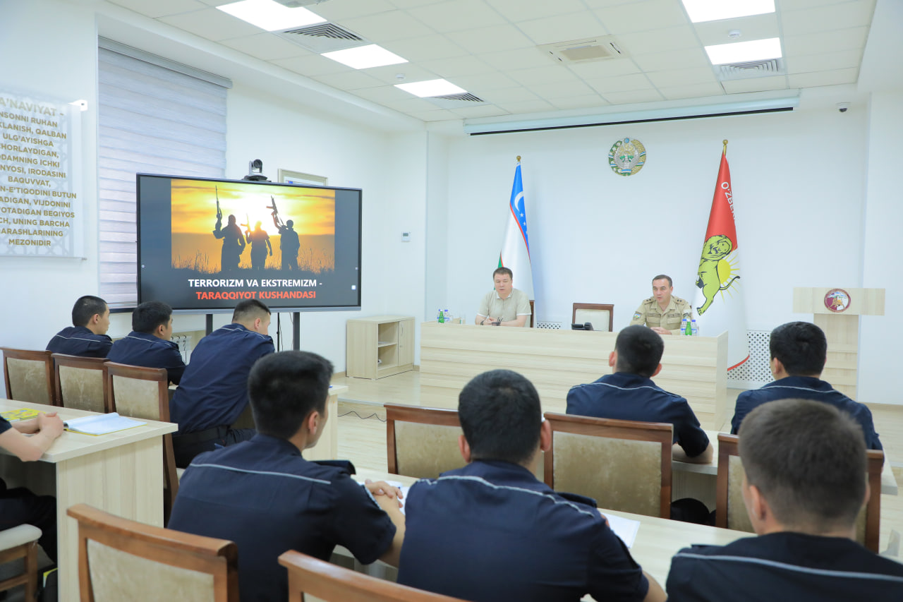 Ўзбекистон Республикаси Миллий гвардияси Тошкент минтақавий ўқув маркази шахсий таркиби ва тингловчилари ўртасида хизмат интизоми ва қонунчиликни мустаҳкамлаш, доимо ҳушёр ва огоҳ хизмат олиб боришларини таъминлаш ҳамда “Ҳуқуқбузарликлар профилактикаси куни” муносабати билан Тошкент шаҳар ИИББ масъул ходимлари иштирокида профилактик учрашув ўтказилди.