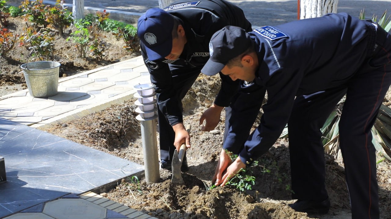 Ўз хизмат бурчини бажариш чоғида, сувда чўкаётган фуқарони қутқариб, мардлик ва жасорат кўрсатиб вафот этган, Норин тумани "Қўриқлаш" бўлими ходими марҳум Абдулвохидов Абдулходи Абдуазиз ўғли ва навоийлик Миллий гвардия ҳарбий хизматчиси Сардобадаги техноген табиий офатларни бартараф этиш вақтида қаҳрамонларча ҳалок бўлган Ҳазрат Сувонов таҳсил олган умумтаълим мактабида ўрнатилган бюст ҳамда жасур ўғлонларнинг дафн этилган қабрлари атрофида Миллий гвардия ҳарбий хизматчилари ва ходимлари, маҳалла фаоллари билан ободонлаштириш ва кўкаламзорлаштириш ишлари олиб борилди.