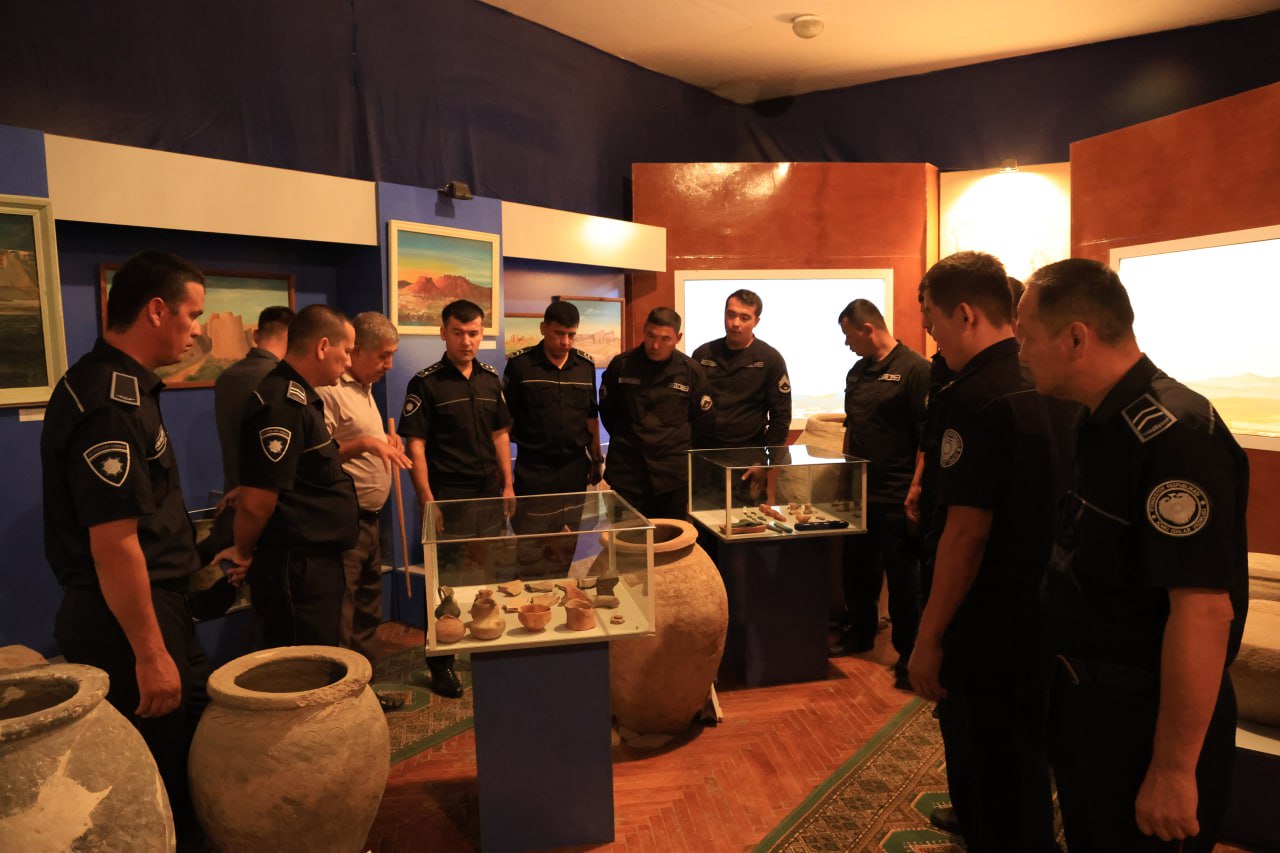 Шу билан бирга, ходимларнинг хизматдан бўш вақтларини мазмунли ўтказиш ва уларни халқимизнинг миллий ва тарихий буюмлари билан яқиндан таништириш мақсадида Элликқала, Беруний ва Тўрткўл туманларидаги Қўриқлаш бўлимларида хизмат олиб бораётган ходимлар учун Қорақалпоғистон Республикаси тарихи ва маданияти музейининг Элликқала тумани филиалига саёҳат ташкил этилди.