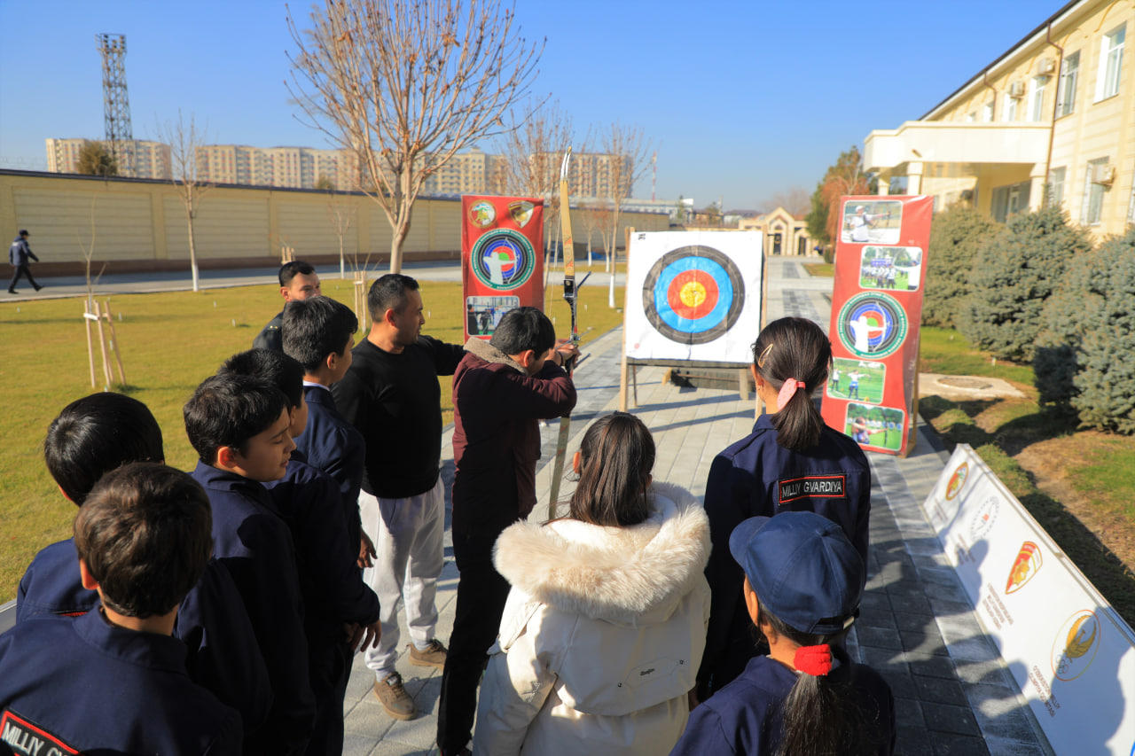 Бундан ташқари, ўқувчилар "Қўриқлаш" бошқармаси психологик хизмат кўрсатиш сифатини, тиббиёт ходимлари томонидан биринчи тиббий ёрдам кўрсатиш усуллари бўйича машғулотларни, махсус техникалар ҳамда Кинология хизмати томонидан кўргазмали чиқишларни мароқ билан томоша қилдилар. Бошқармада яратилган шароитлар, хизмат ҳамда ўқув хоналари билан яқиндан танишиб чиқдилар. Шундан сўнг, камондан отиш бўйича ташкил этилган машғулотида ўқувчилар ўз маҳоратларини ошириш имконига эга бўлдилар.