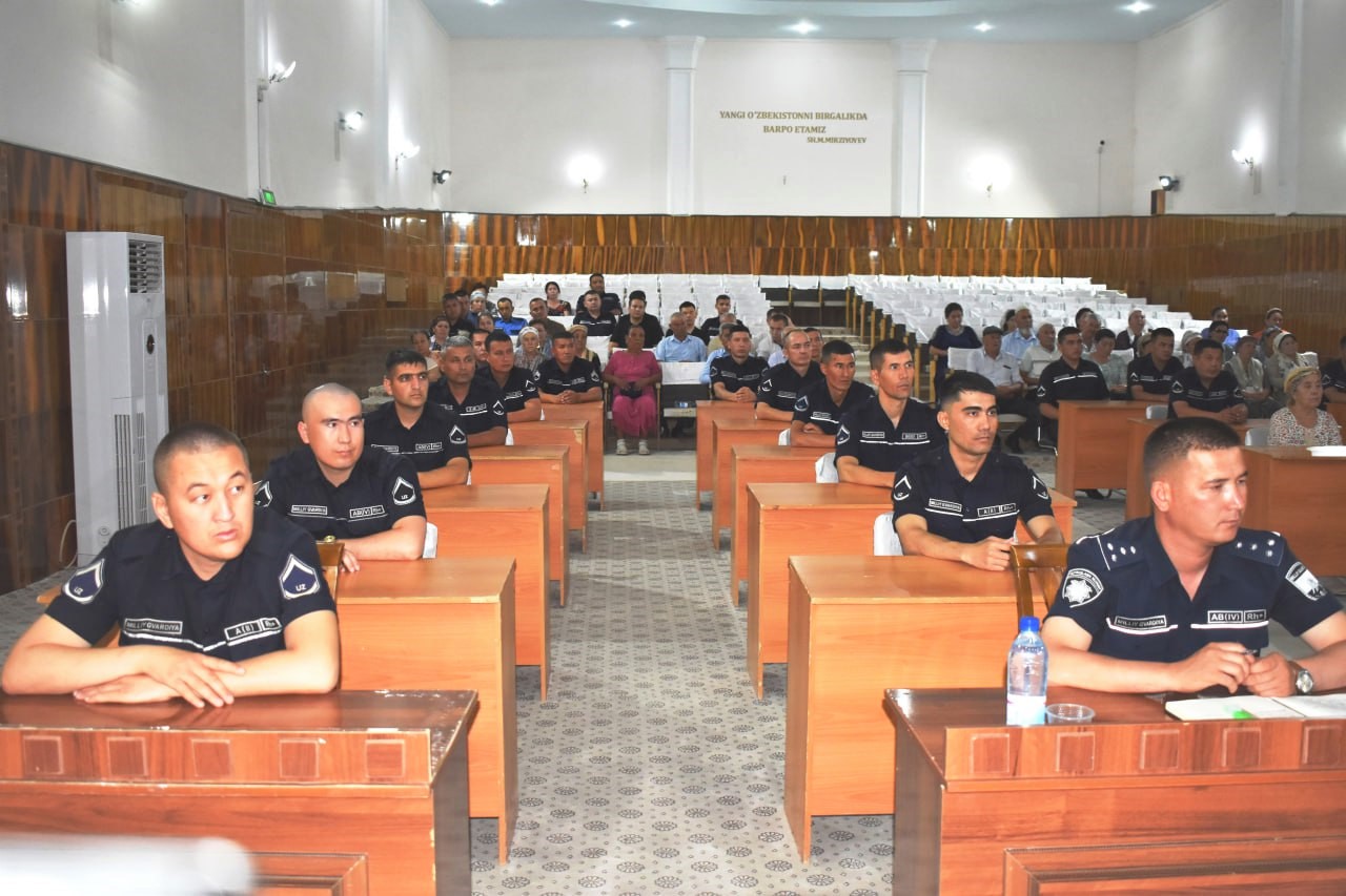Шу билан бирга ўз хизмат вазифаларини чин дилдан бажараётган ходимларга навбатдаги махсус унвонлар берилиб, хизматда ўз сафдошларига ўрнак бўлиб келаётган бир гуруҳ ходимларнинг оила аъзоларига бошқарма бошлиғининг ташаккурномалари топширилди.