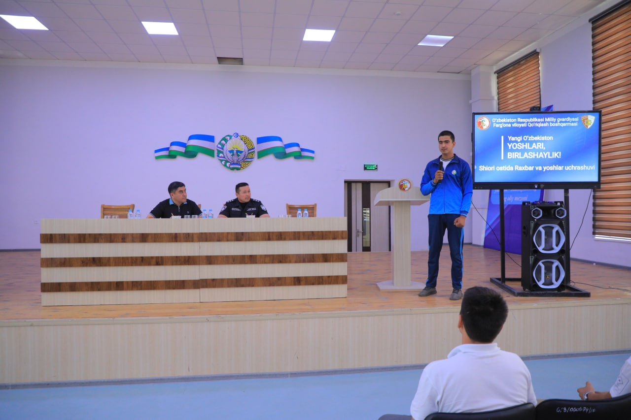 МИЛЛИЙ ГВАРДИЯ ФАРҒОНА ВИЛОЯТИ "ҚЎРИҚЛАШ" БОШҚАРМАСИ БОШЛИҒИ ЁШЛАР БИЛАН УЧРАШДИ