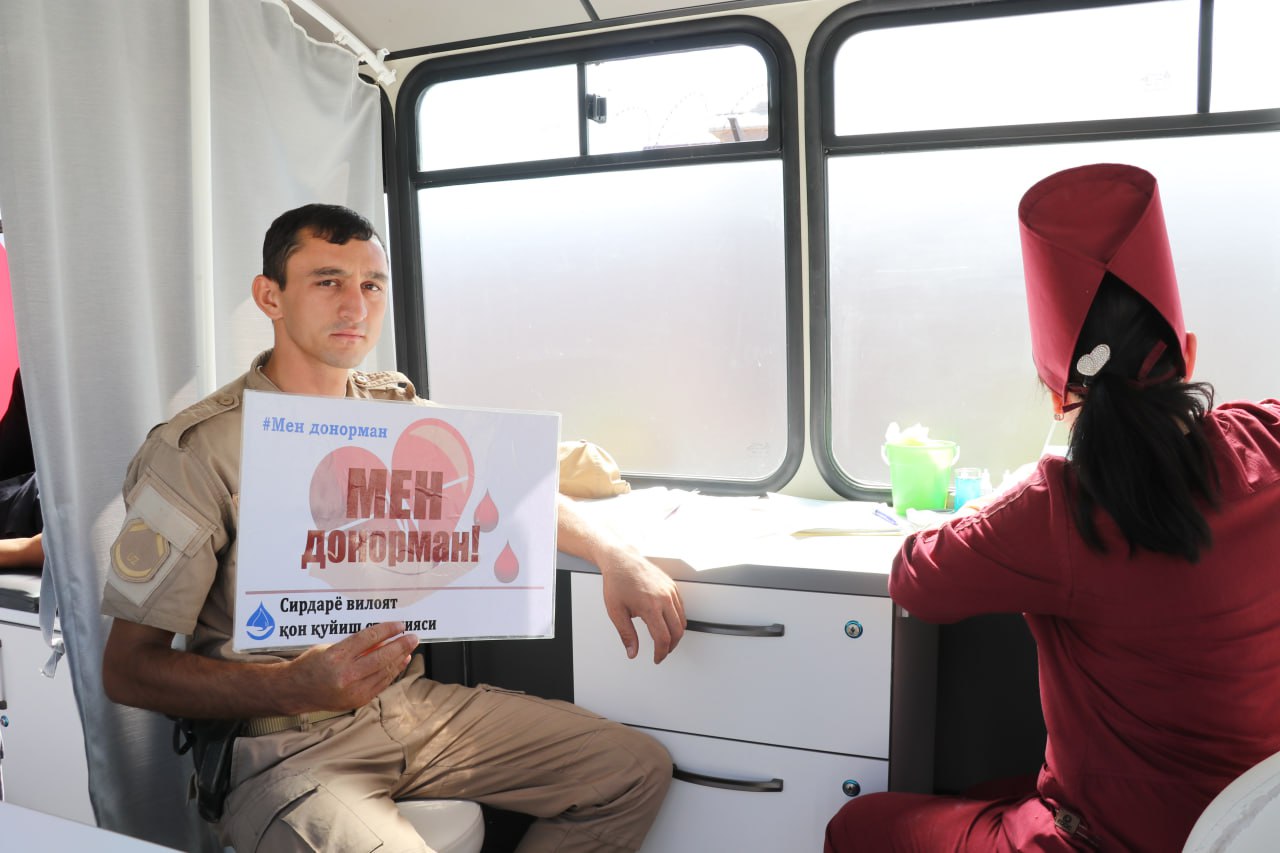 Куни кеча Сирдарё вилояти Қон қуйиш станцияси вакиллари томонидан вилоятнинг Оқолтин тумани "Қўриқлаш" бўлими ходимлари иштирокида “Мен донорман” шиори остида беғараз қон топшириш акцияси ўтказилди.