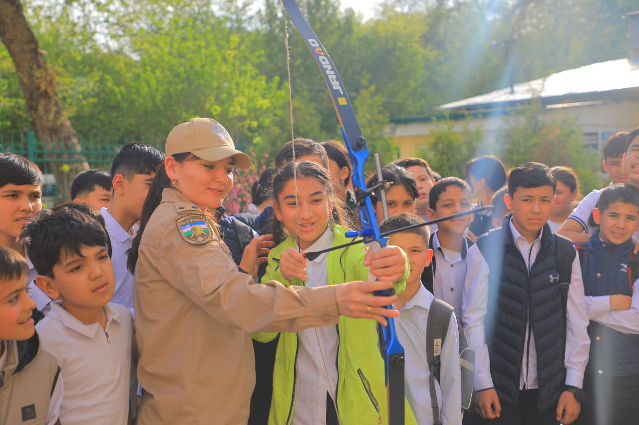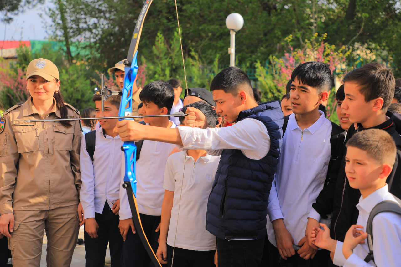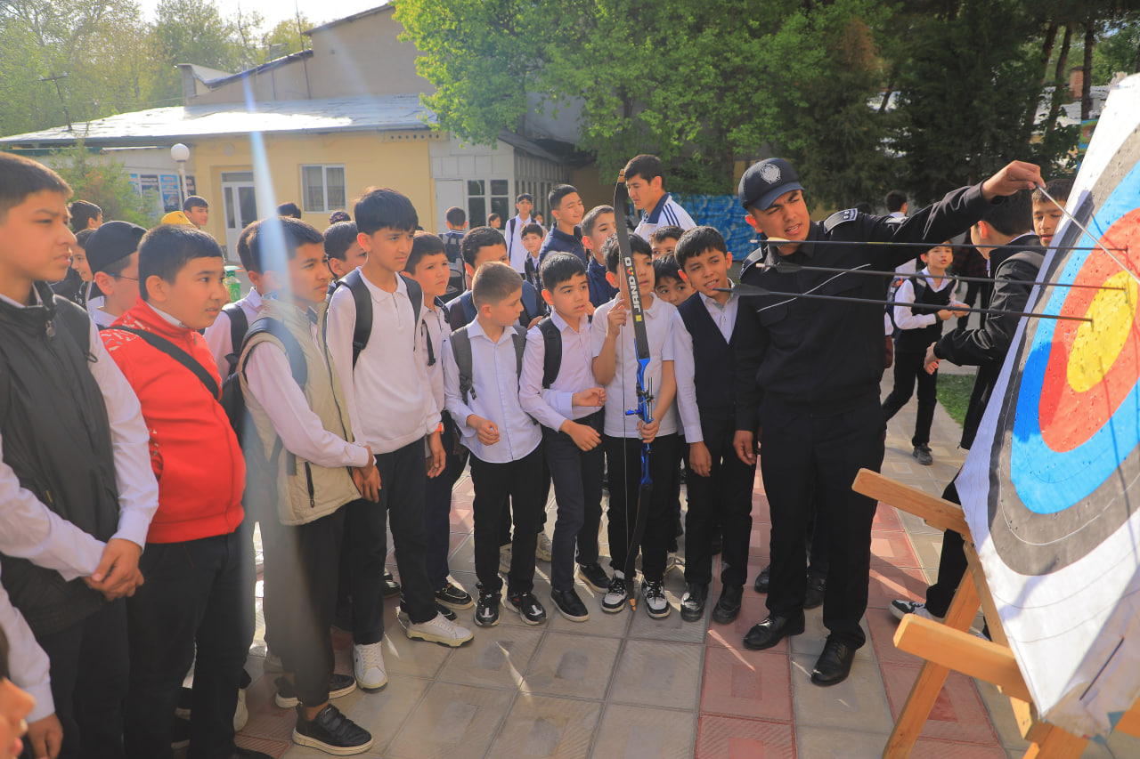 Тадбир доирасида ўқувчи ёшлар иштирокида давра суҳбати ташкил этилиб, унда узоқ йиллар ҳуқуқ-тартибот идоралари тизимида самарали фаолият юритган фахрийлар ёшлар билан ҳаётий тажрибаларини ўртоқлашди, эртамиз эгаларининг келажакда юрт тараққиёти учун муносиб ҳисса қўшишига ишонч билдирди.Шундан сўнг ёшлар Миллий гвардия ходимлари хизмат вақтида фойдаланиладиган анжом-аслаҳалар ва махсус воситалар билан танишиш имкониятига эга бўлишди. Тадбир якунида ўқувчилар иштирокида спортнинг камондан отиш тури бўйича маҳорат дарси ҳам ташкил этилди.