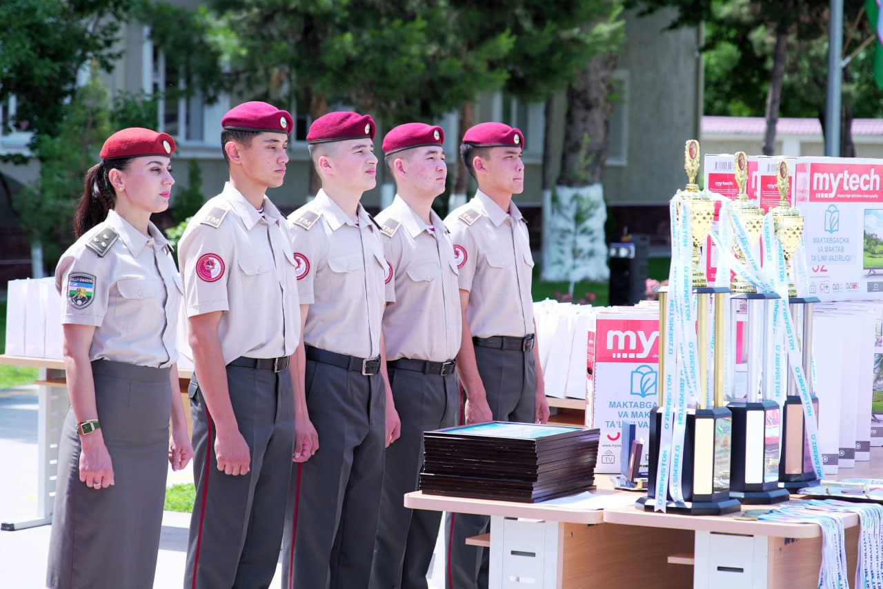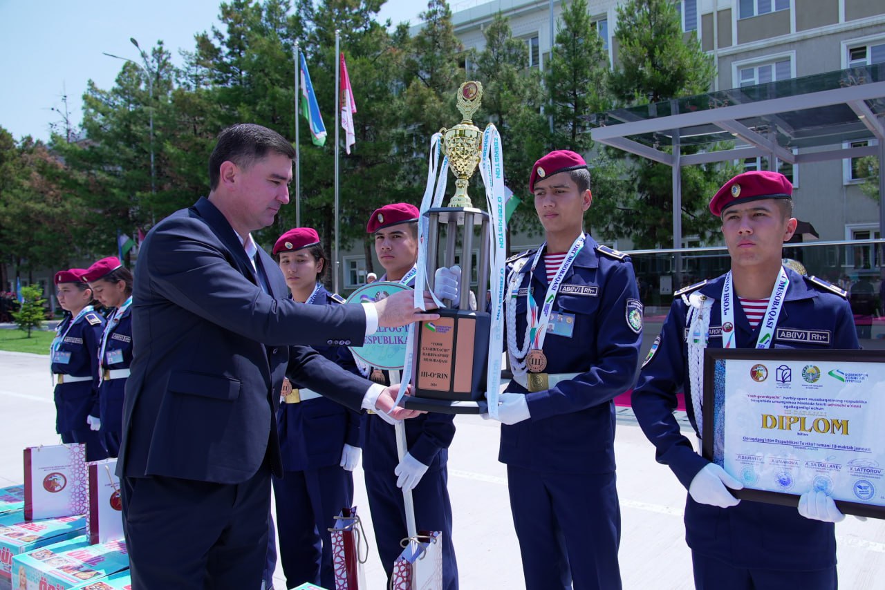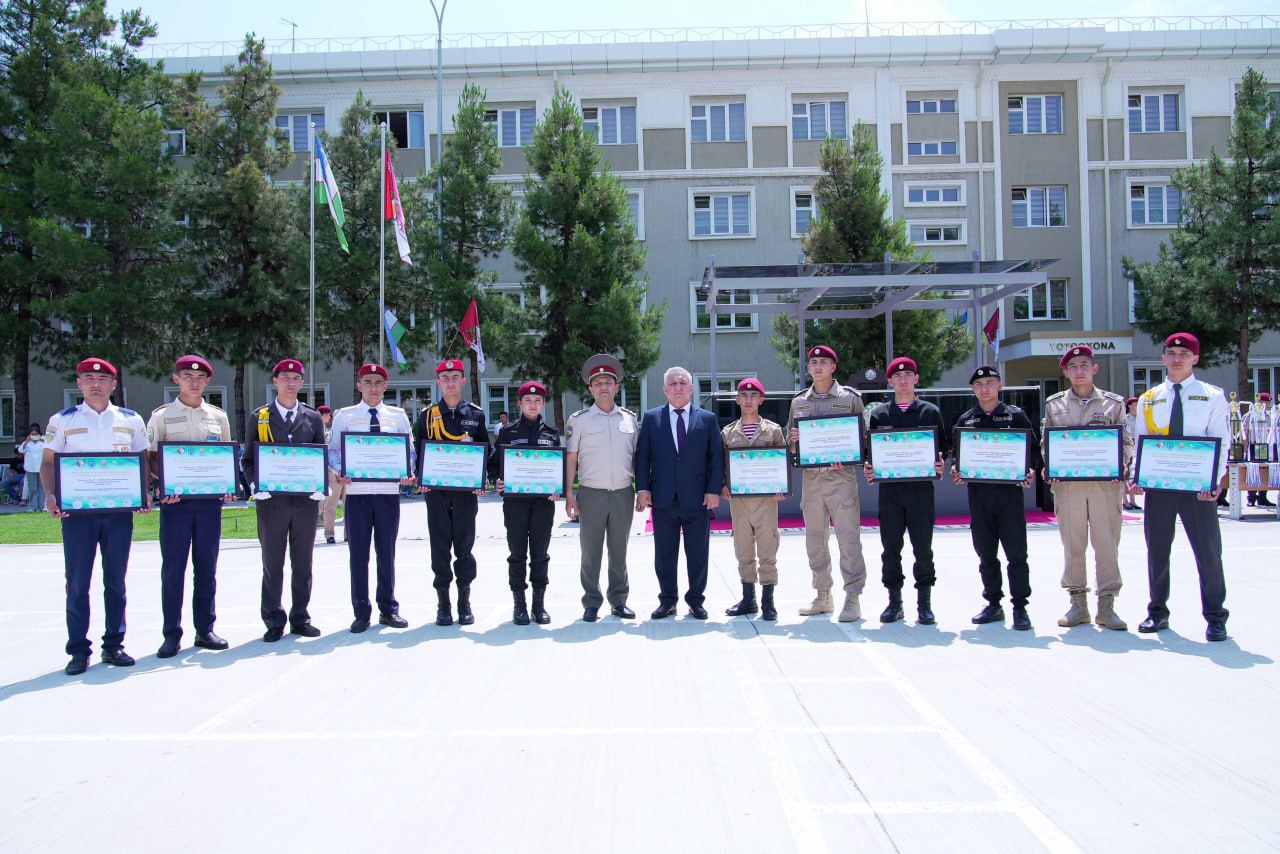 Дастлаб ҳарбий-академик лицей саф майдонида ҳарбий-спорт мусобақасининг 7 та номинациясини қўлга киритган ҳамда 4 та фаол иштирок этган жамоа сардорлари тақдирланди.