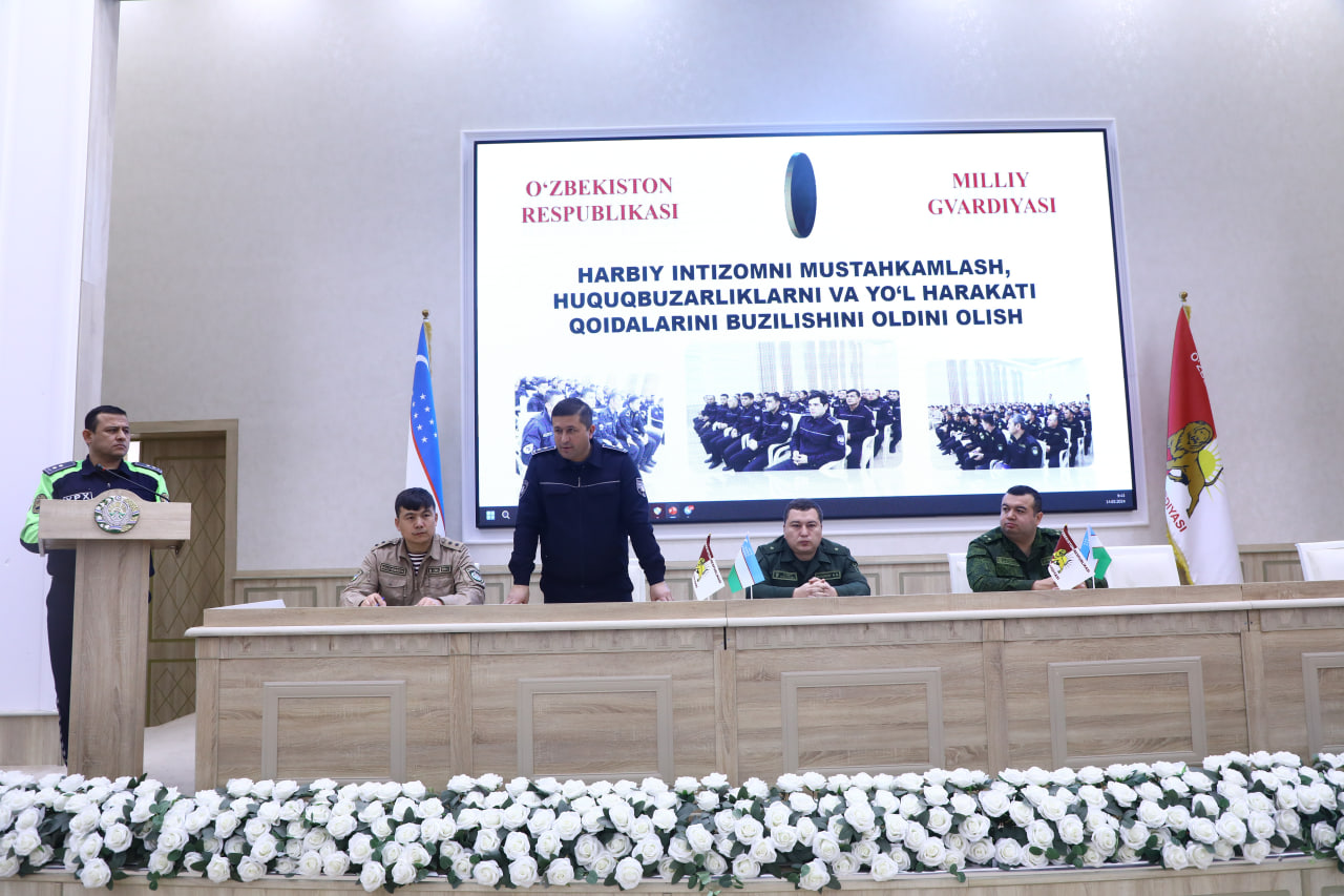 Тадбирда Қашқадарё вилояти Миллий гвардия бўйича бошқармаси раҳбарияти, шахсий хавфсизлик бўлими, "Қўриқлаш" бошқармаси тарбиявий ва мафкуравий ишлар бўлими масъул ходимлари, шунингдек Қарши ҳарбий прокурори ўринбосари ва Қашқадарё вилояти ИИВ ЙХҲБ масъул инспектори ҳамкорлигида ҳарбий интизом ва ҳуқуқ тартиботини мустаҳкамлаш, шахсий таркибни ҳаётини ва соғлигини асраш, йўл-транспорт ҳодисалари ҳамда қонун бузилиши ҳолатларини олдини олиш ҳар бир кишининг вазифаси эканлиги таъкидлади.