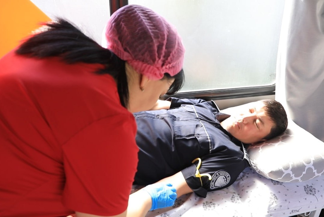 Ушбу қон топшириш акцияси бемор қалбларга, айниқса онкологик касалликлар билан хасталанган болажонларни соғломлаштириш ва саломатлигини тиклаш мақсадида вилоят қон қуйиш станцияси мутахассислари ҳамда Қўриқлаш бошқармаси томонидан ташкил этилди.