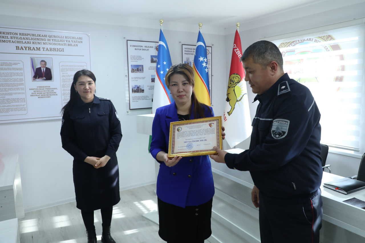 Ушбу тадбирнинг ўтказилишида фаол иштирок этган мутахассисларга Миллий гвардия Қорақалпоғистон Республикаси "Қўриқлаш" бошқармаси бошлиғининг ташаккурномалар тантанали равишда топширилди.