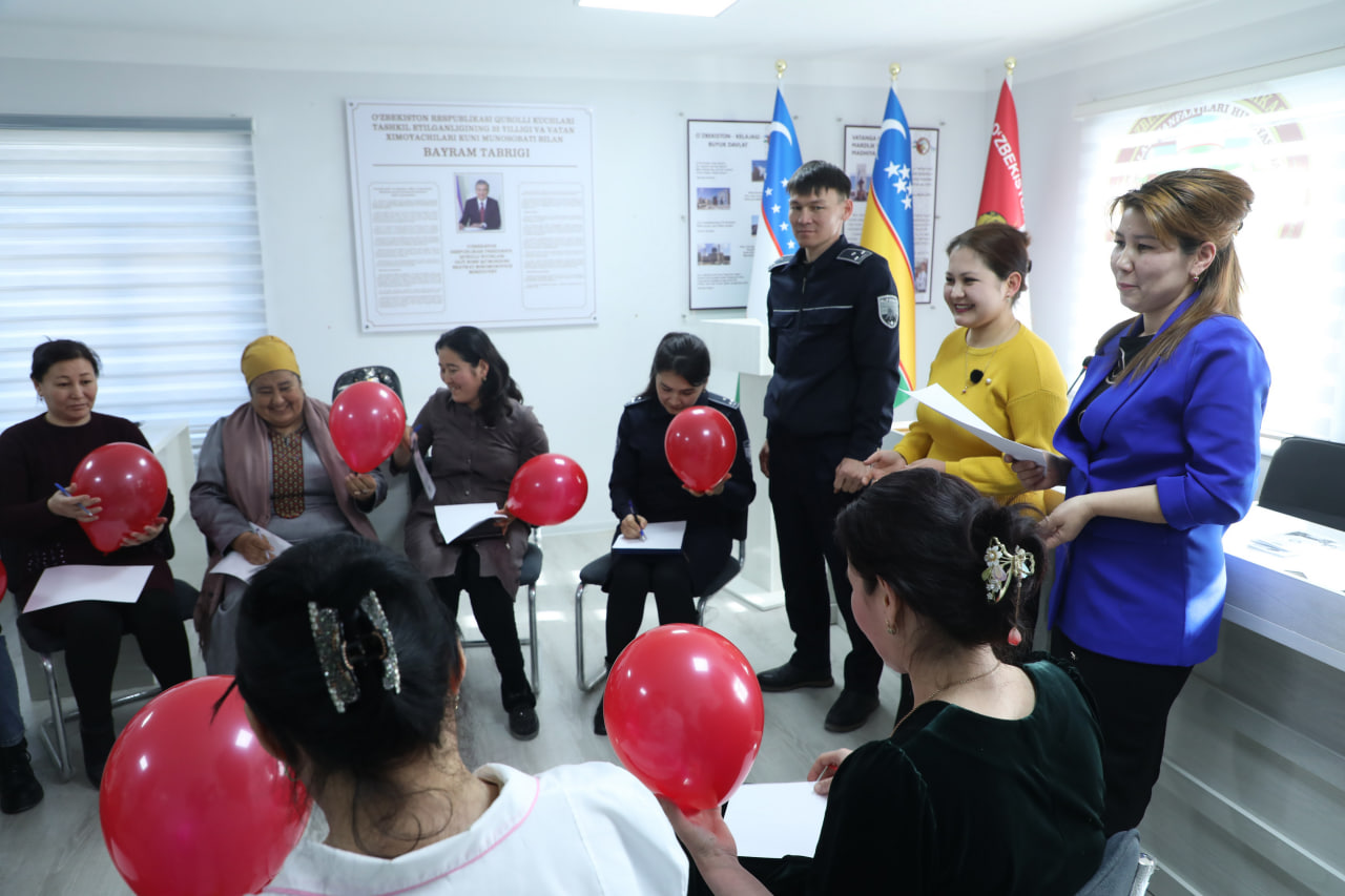 Ўзбекистон Республикаси Миллий гвардияси Қорақалпоғистон Республикаси "Қўриқлаш" бошқармаси шифокорлик бўлими, психолог ва хотин-қизлар масалалари бўйича инспектори томонидан Тақиатош тумани "Қўриқлаш" бўлимида хизмат олиб бораётган ходимларнинг оила аъзолари иштирокида давра суҳбати ўтказилди. Ушбу давра суҳбати мобайнида сўзга чиққан мутахассислар томонидан шахсий таркиб орасида соғлом турмуш тарзини тарғиб қилиш мақсадида профилактик суҳбатлар олиб борилиб, ходимлар орасида ҳар қандай салбий ҳолатларнинг олдини олиш, уларнинг хизмат интизомини мустаҳкамлашда оила аъзолари билан бирга ишлашни йўлга қўйиш бўйича ўзаро суҳбатлар ўтказилди. Тадбирда психологлар томонидан ходимларнинг оила аъзолари билан психологик семинар-тренинглар ўтказилди.