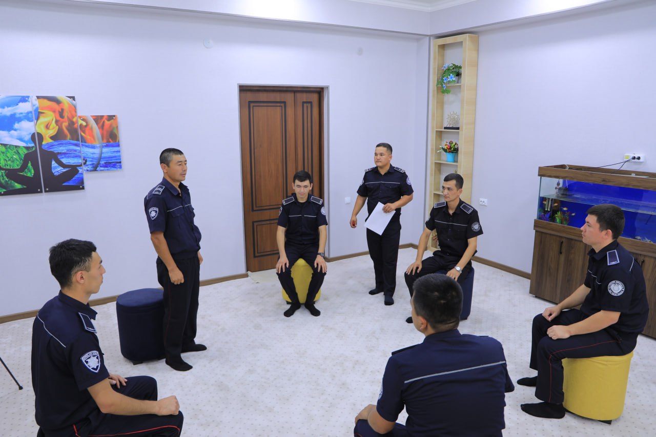 Тошкент ҳамда Жиззах вилоятлари Қўриқлаш бошқармалари психологлари томонидан шахсий таркибнинг руҳий барқарорлигини таъминлаш, касбий зўриқишларни олдини олиш ва бу орқали хизмат сифатини яхшилаш мақсадида уқув-семинар ҳамда тренинг машғулотлари ўтказилди.