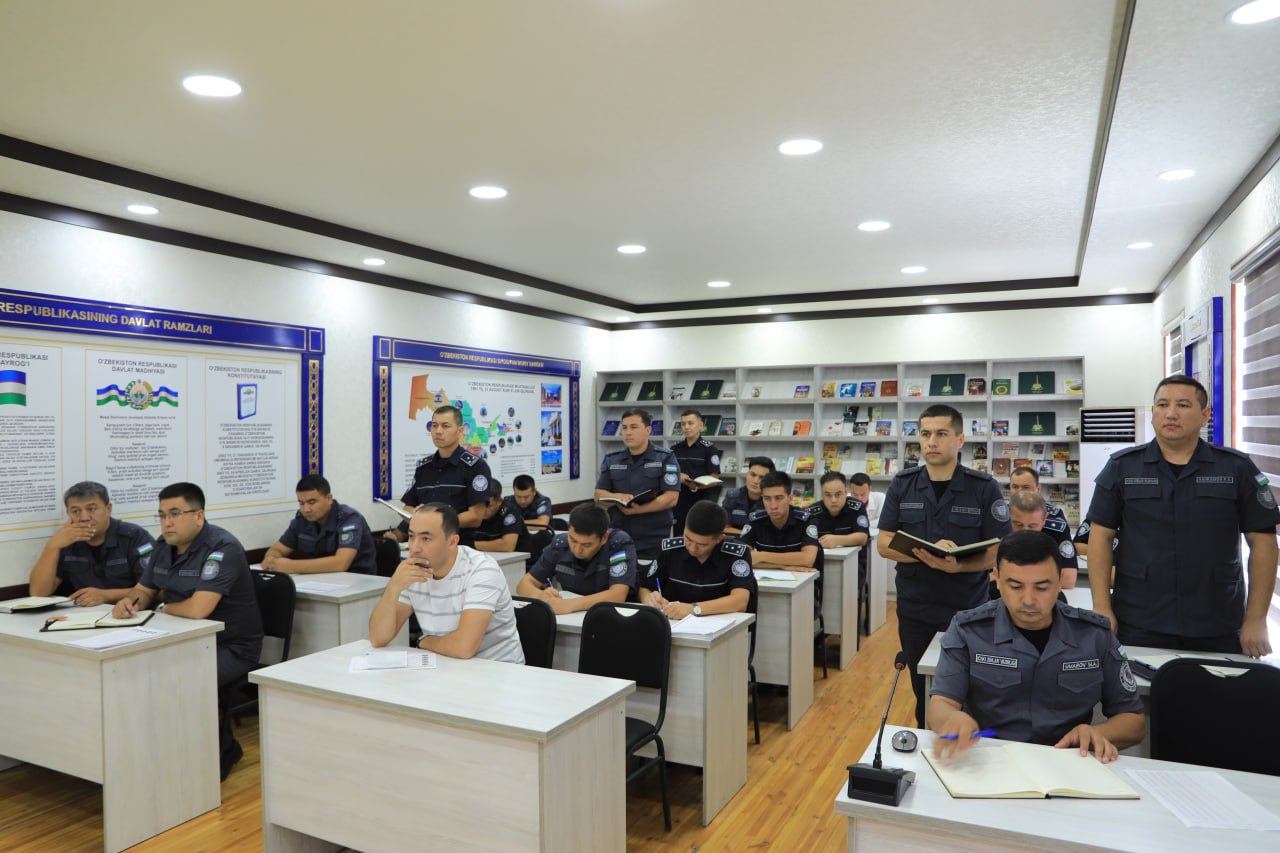 Хизмат интизомини мустаҳкамлаш ва ҳуқуқ-тартибот бузилишларига нисбатан муросасиз муносабатни шакллантиришга қаратилган учрашув ўтказилди