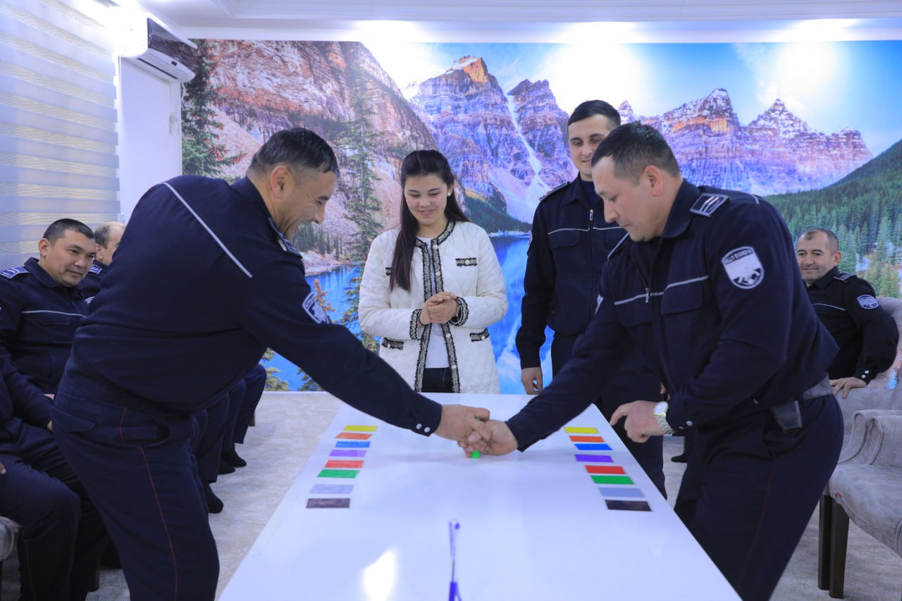 Фарғона вилояти ИИБ Қўриқлаш департаменти психологлари томонидан ходимлар ўртасида “Шахслараро муносабатларда шахснинг ўрни ва роли: коммуникатив сифатларни шакллантириш” мавзусида психологик тренинг машғулотлари ўтказилди.