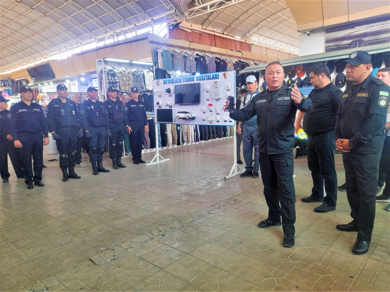 Шундан сўнг масъуллар бозор ҳудудини кўздан кечириб, тадбиркор ва харидорлар билан суҳбатлашди ҳамда "Қўриқлаш" хизматлари ва афзалликлари юзасидан тушунтириш ишлари олиб борилди