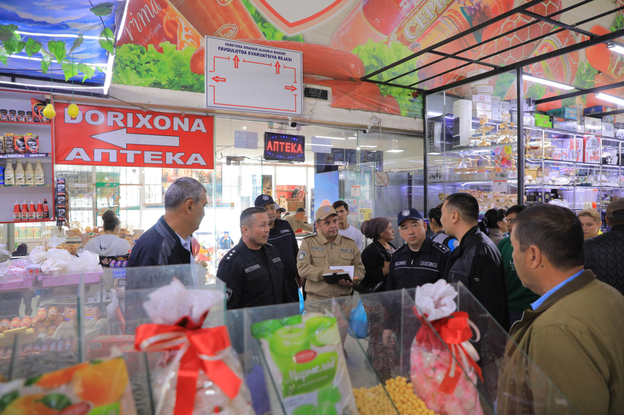 Дастлаб, бозор маъмурияти ва бозор ҳудудида хизмат олиб бораётган ҳарбий хизматчилар ва ходимларнинг жамоат тартибини сақлаш, ўғирлик, тартибсизлик ва келиб чиқиши мумкин бўлган кўнгилсизликларни олдини олиш бўйича амалга оширган ишлари билан танишди. Шунингдек, бозор ҳудудини йўналишли патруль ва савдо объектларини шартнома асосида сигнализациялари орқали қўриқланиши бўйича музокаралар олиб бордилар.